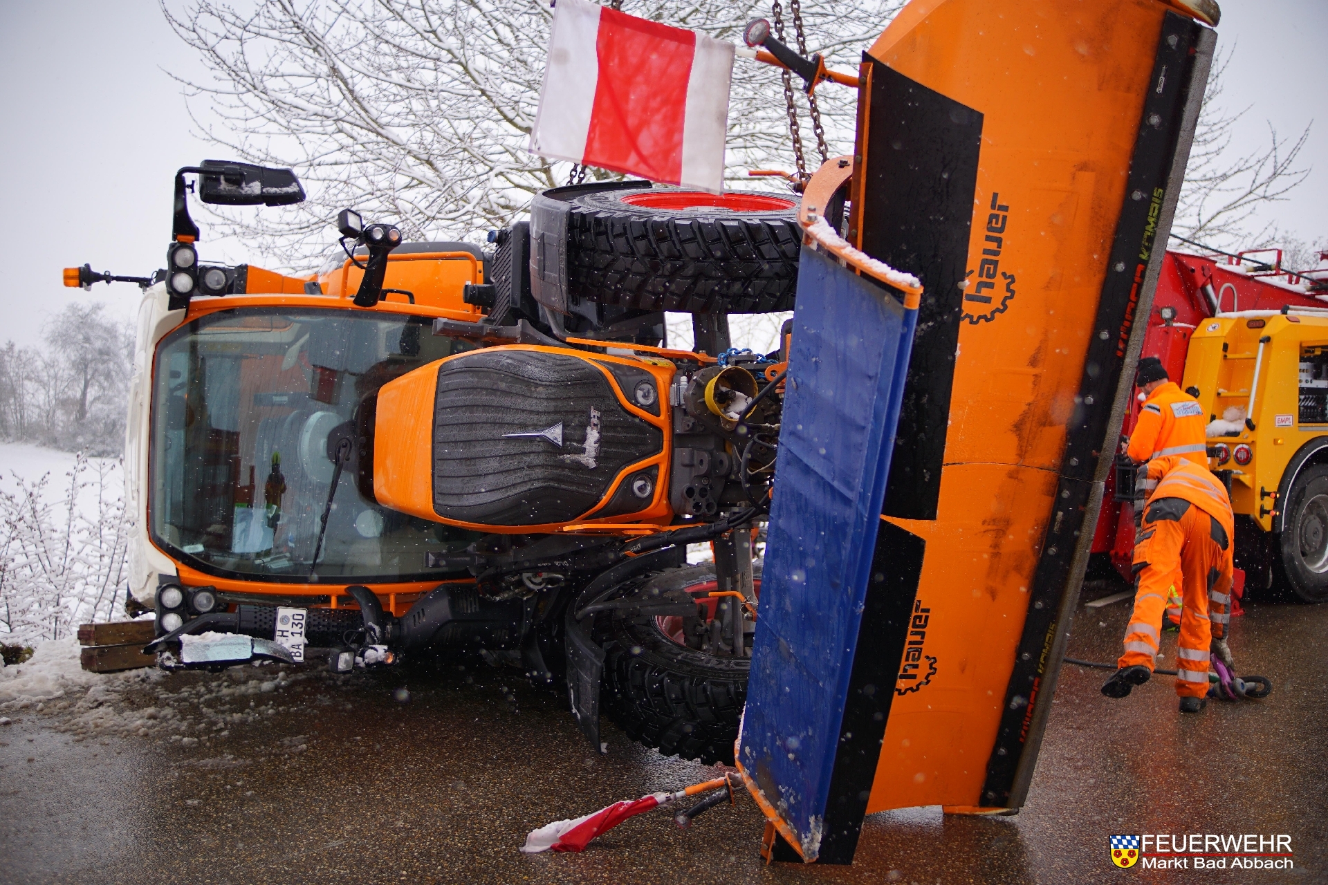 Der Fahrer eines Räumfahrzeuges verlor die Kontrolle und rutschte in den Graben und kippte darauhin zur Seite um.