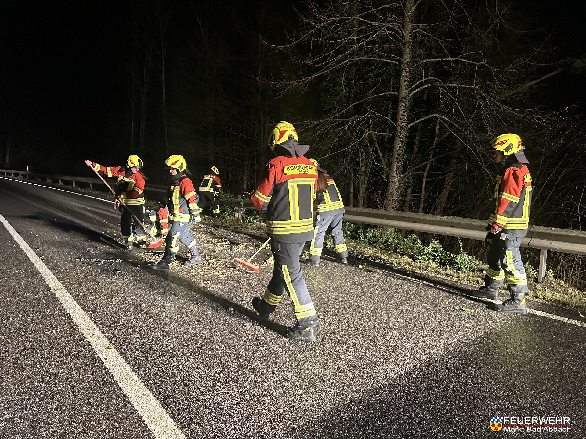 Um 1:57 Uhr wurde die Ortsteilfeuerwehr Lengfeld zu einem umgestürzten Baum auf die Bundesstraße 16 zwischen Alkofen und Saal a.d. Donau alarmiert.