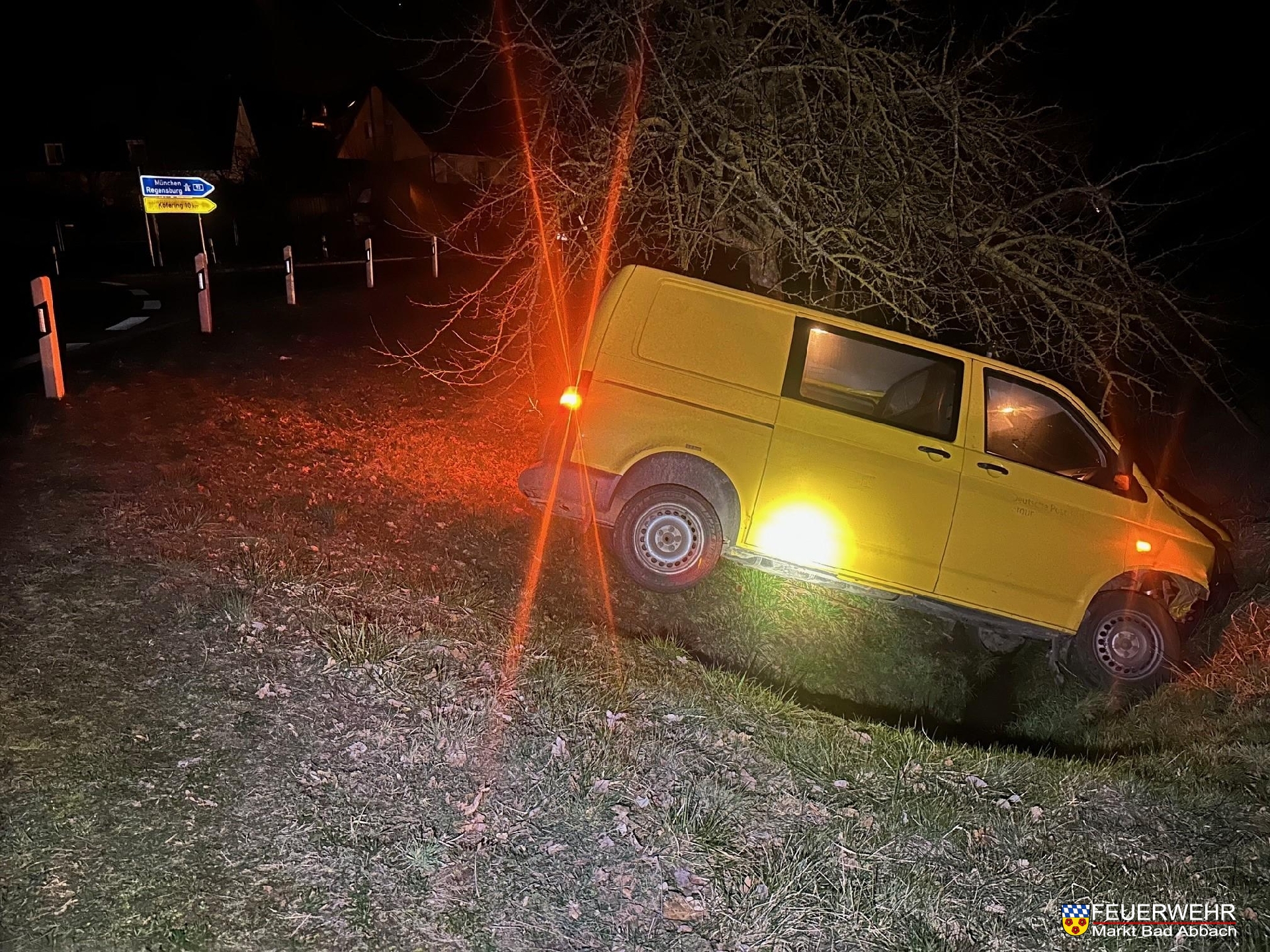 Gegen 23:30 Uhr wurden wir telefonisch über einen Verkehrsunfall auf Höhe des Kreisverkehrs Heidfeld informiert. Ein alleinbeteiligter Kleintransporter, wich einem Tier aus und fuhr in den angrenzenden Straßengraben.