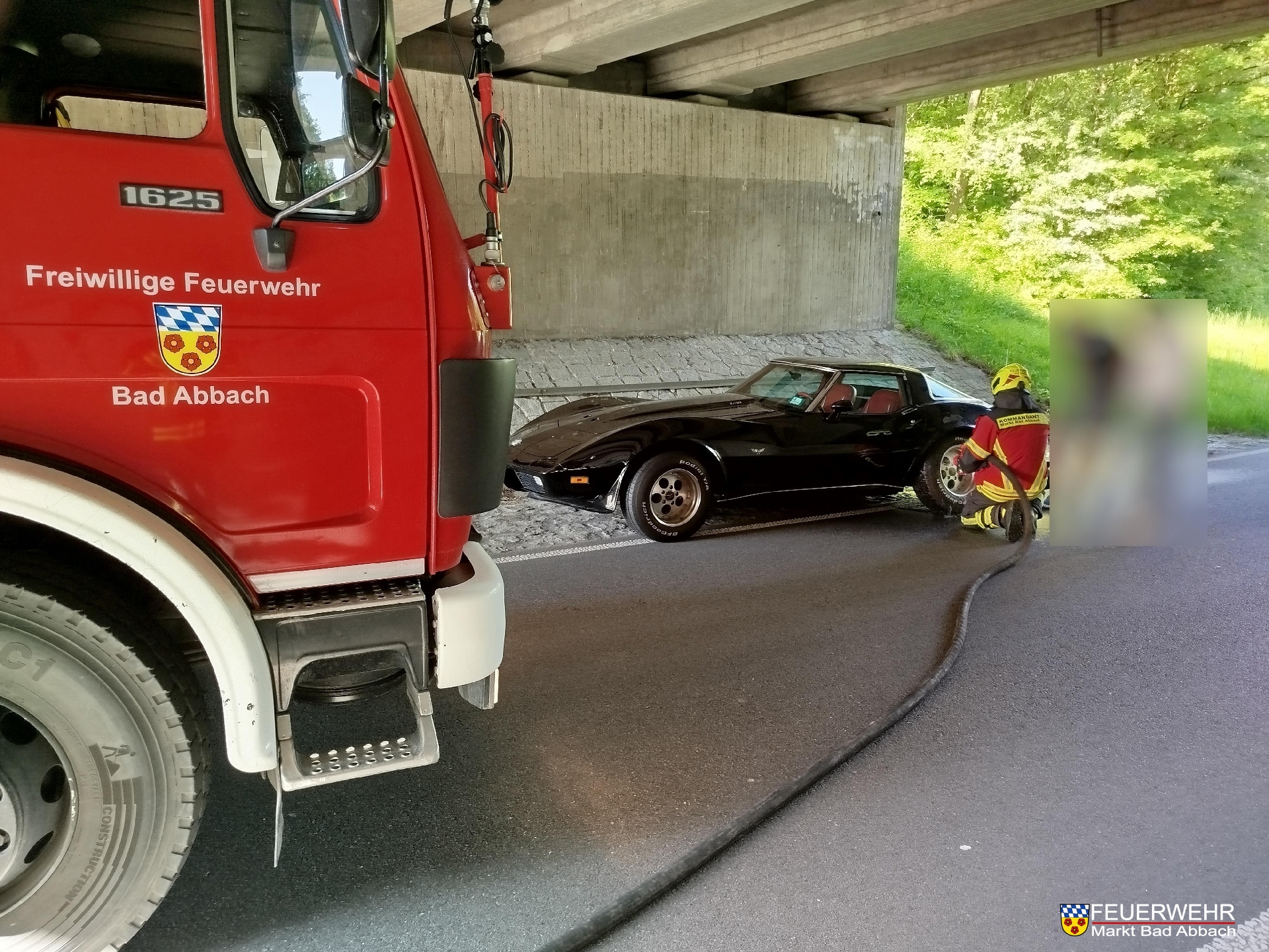 Aufgrund eines technischen Defekts an einer Corvette mussten wir mit unserem Tanklöschfahrzeug die hintere Fahrzeugachse kühlen, da diese überhitzte.