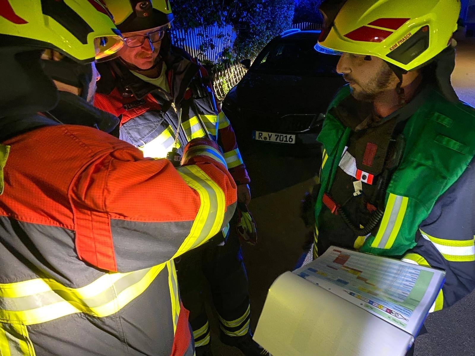 Kurz nach Eintreffen nahe der alarmierten Adresse konnte lackähnlicher Geruch wahrgenommen werden. Fußläufige Gasmessungen erbrachten keine Ergebnisse, worauhin sich die Einsatzleitung zusammen mit dem Kreisbrandmeister Gefahrgut für eine Messung mittels Prüfröhrchen entschied.