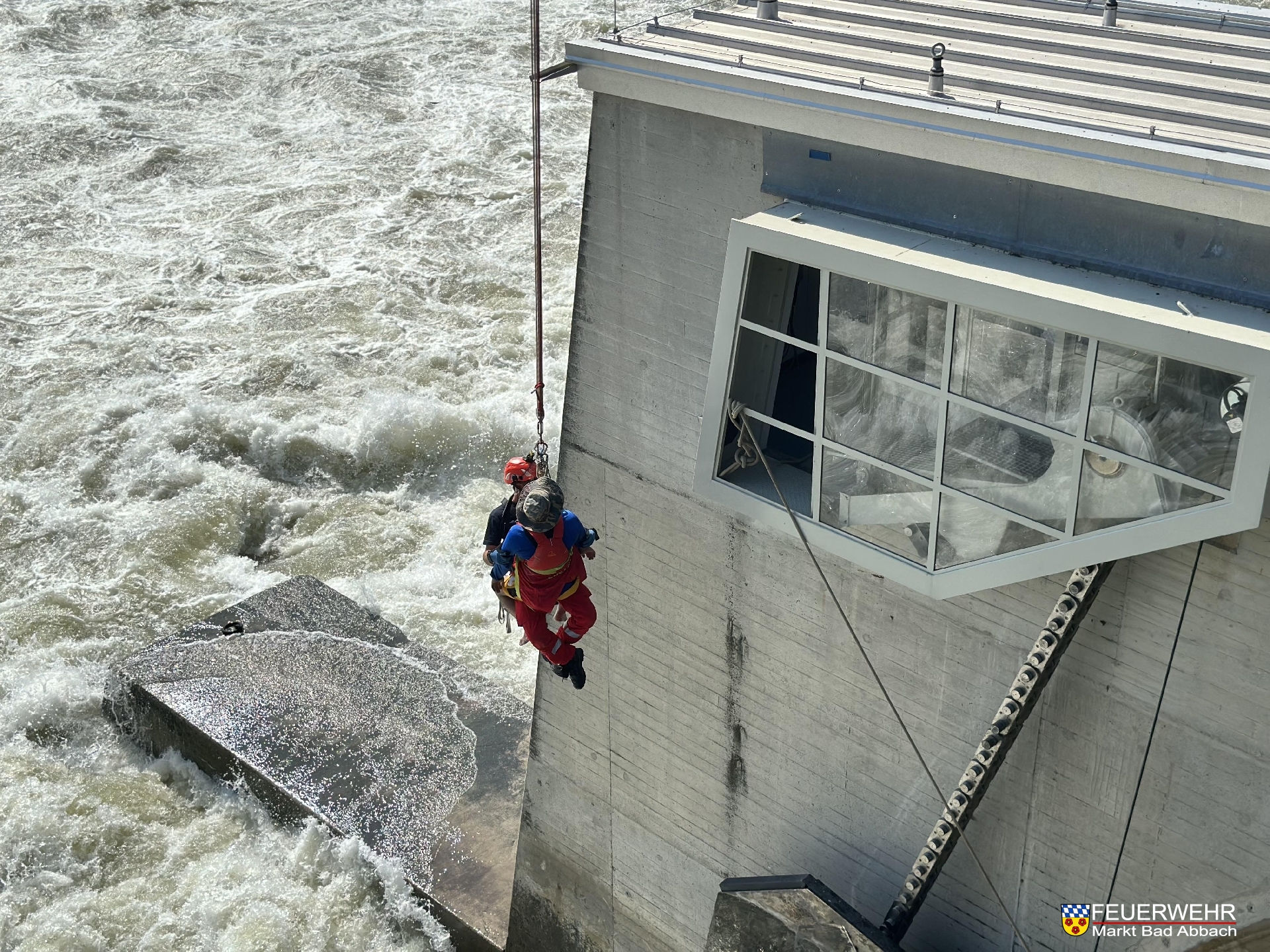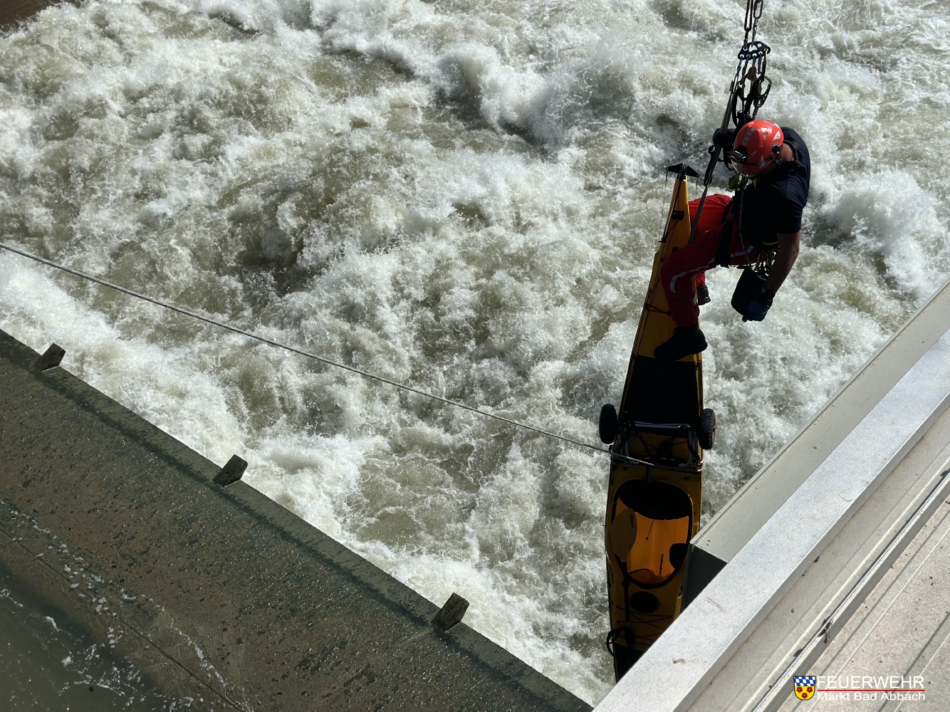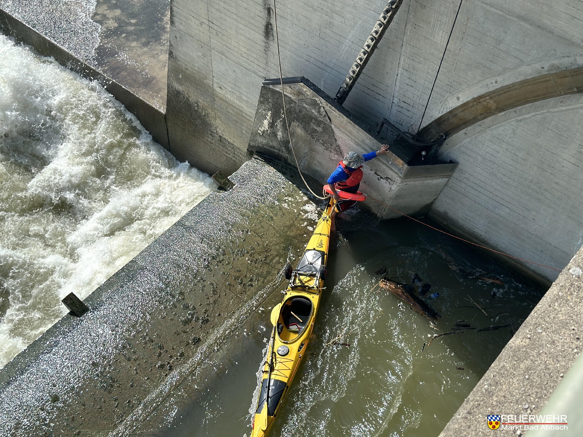 Ein Kajakfahrer geriet aus Unachtsamkeit in die Strömung des Donaukraftwerks und trieb in eine der Wehrklappen. Glücklicherweise konnte er sich aus letzter Kraft dort selbst sichern. Aufgrund der lebensgefährlichen Wassermaßen in diesem Bereich war ein alleiniges Befreien aus dieser Situation nicht mehr möglich.