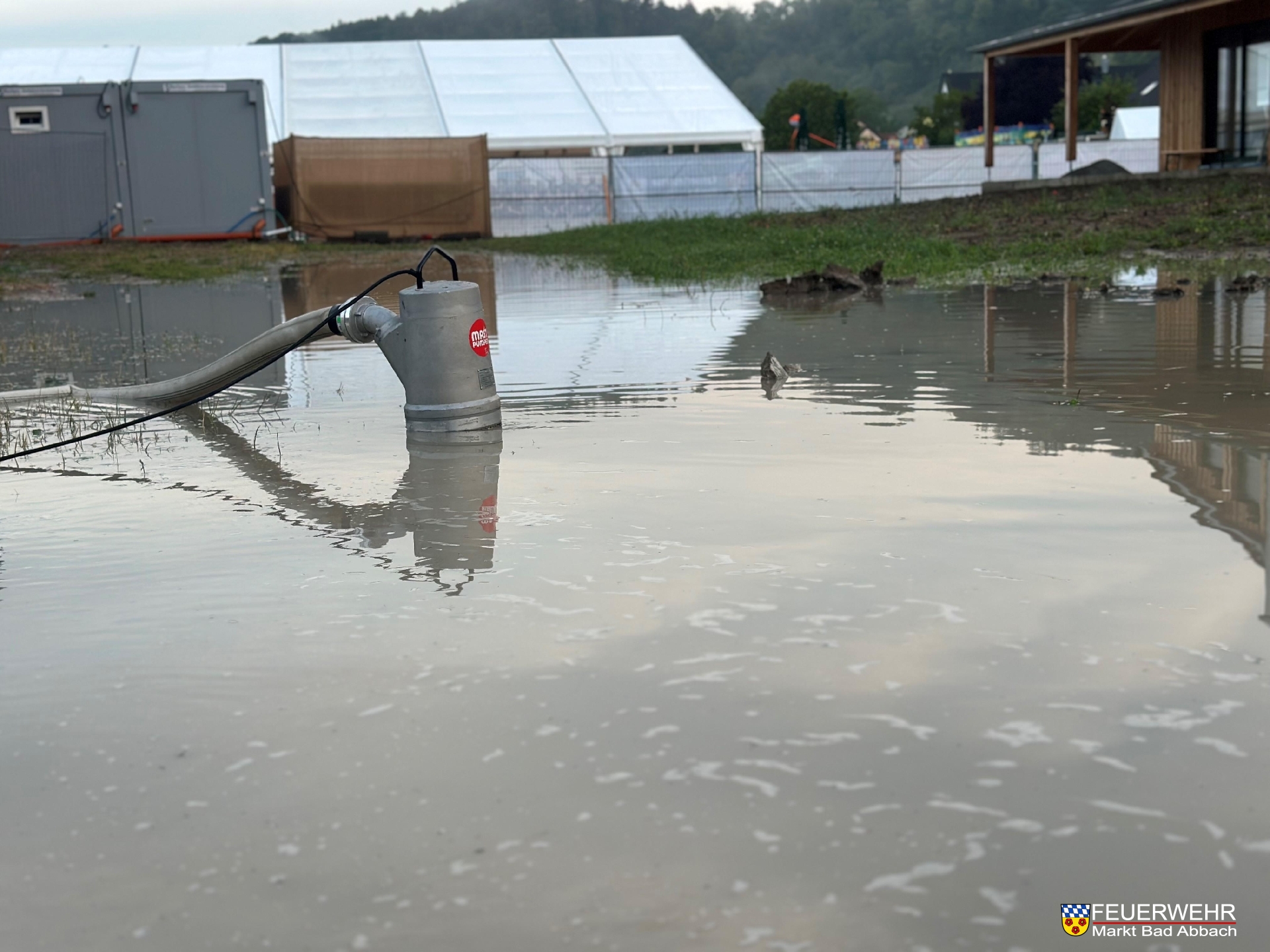 Unter Einsatz mehrerer Schmutzwasserpumpen wurden die Flächen möglichst von den Wassermaßen über Stunden hinweg befreit.
