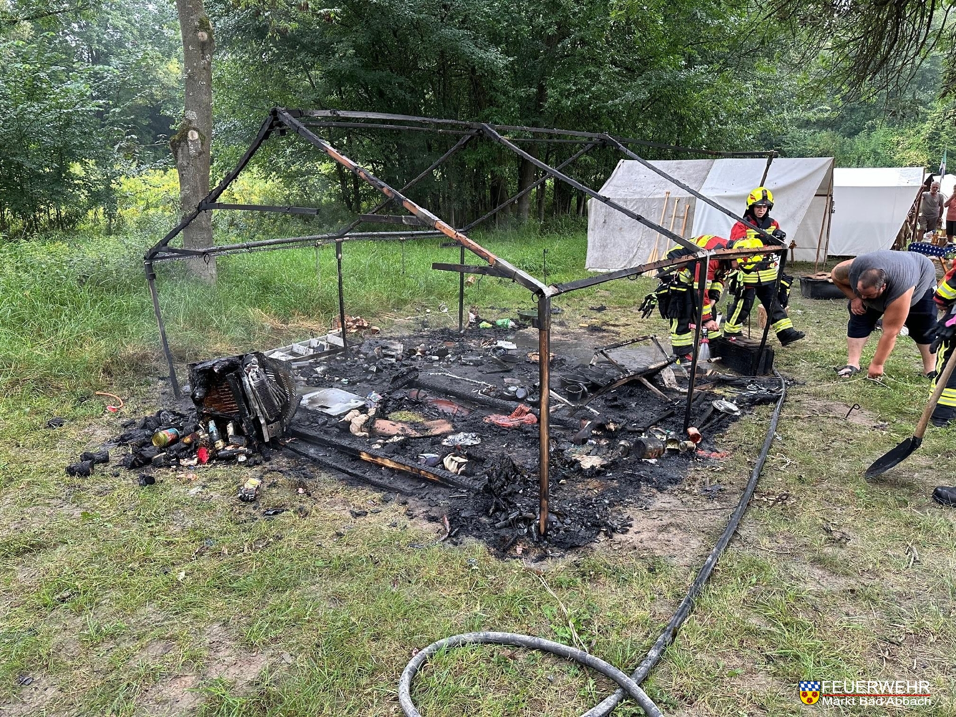 Gegen 8:00 Uhr am heutigen Sonntag wurden wir zusammen mit den Ortsteilwehren Poikam und Lengfeld zu einer brennenden Gasflasche auf einen Zeltplatz in der Inselstraße alarmiert.