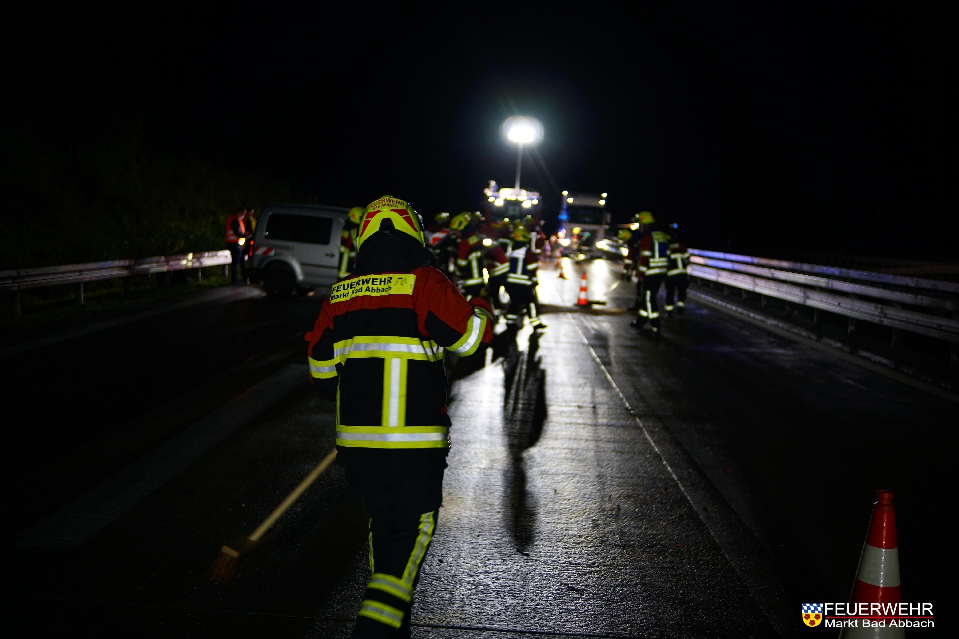 Gemeinsam mit der Feuerwehr Teugn wurden wir auf die Autobahn 93 zwischen dem Dreieck Saalhaupt und Bad Abbach in Fahrtrichtung Regensburg alarmiert. Aus uns unbekannten Gründen kam es zum Zusammenstoß zwischen einem Pkw und einem Lkw, glücklicherweise wurde niemand verletzt, jedoch streckte sich das Trümmerfeld über 100m.