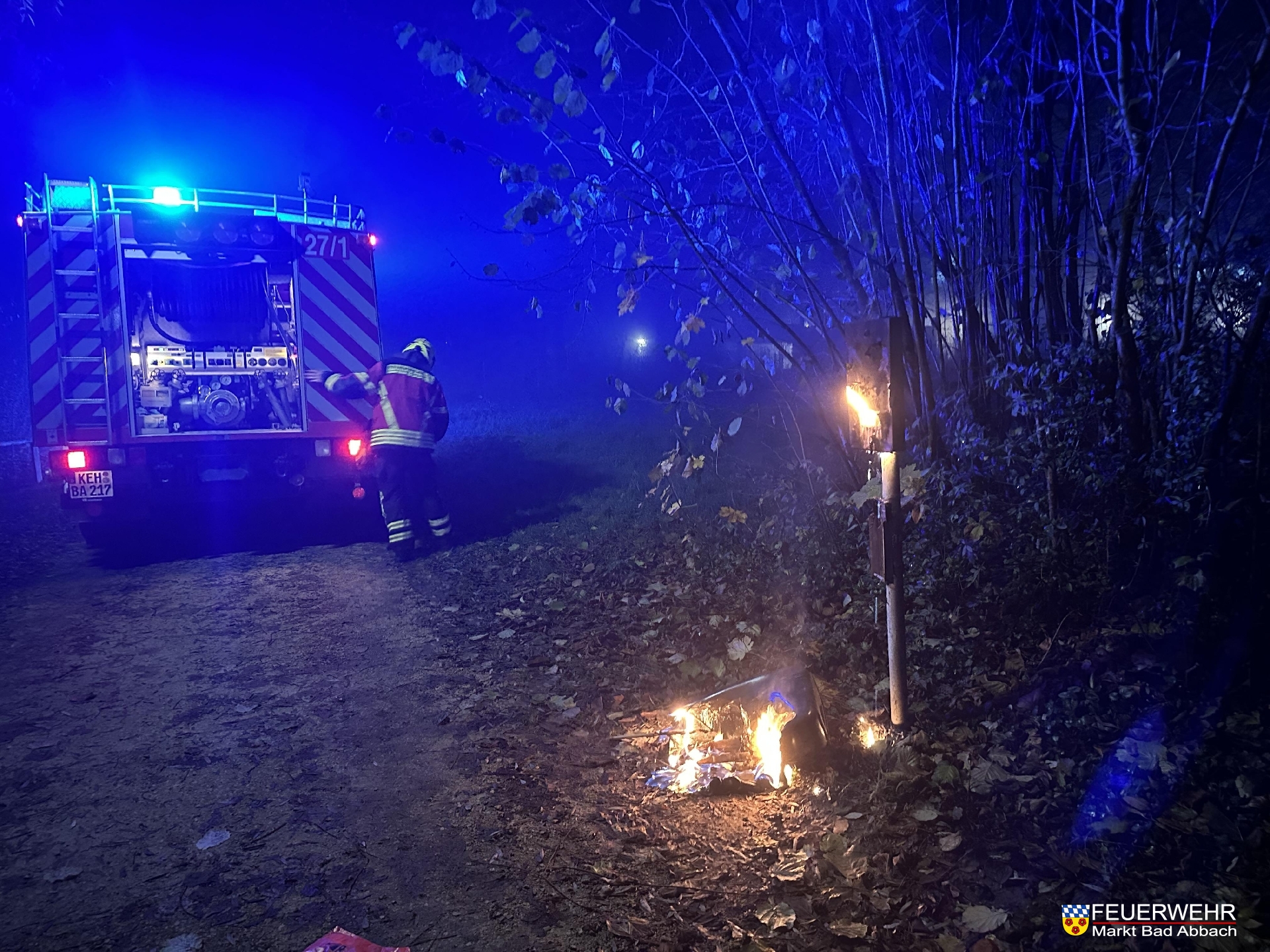 Mittels einer Schnellangriffseinrichtung, konnte das Feuer zügig abgelöscht und die Einsatzstelle der Polizei sowie dem örtlichen Bauhof übergeben werden.