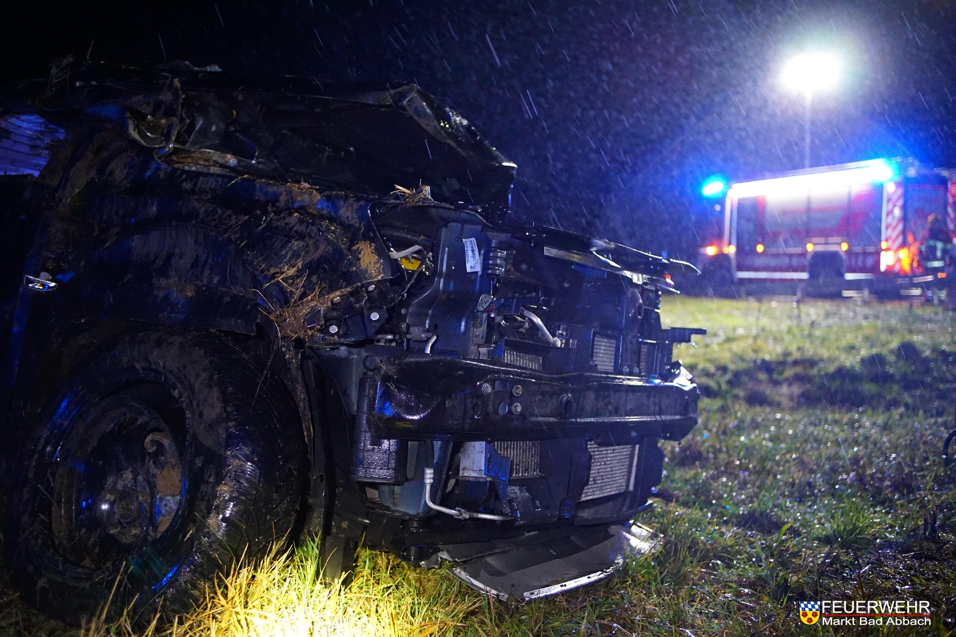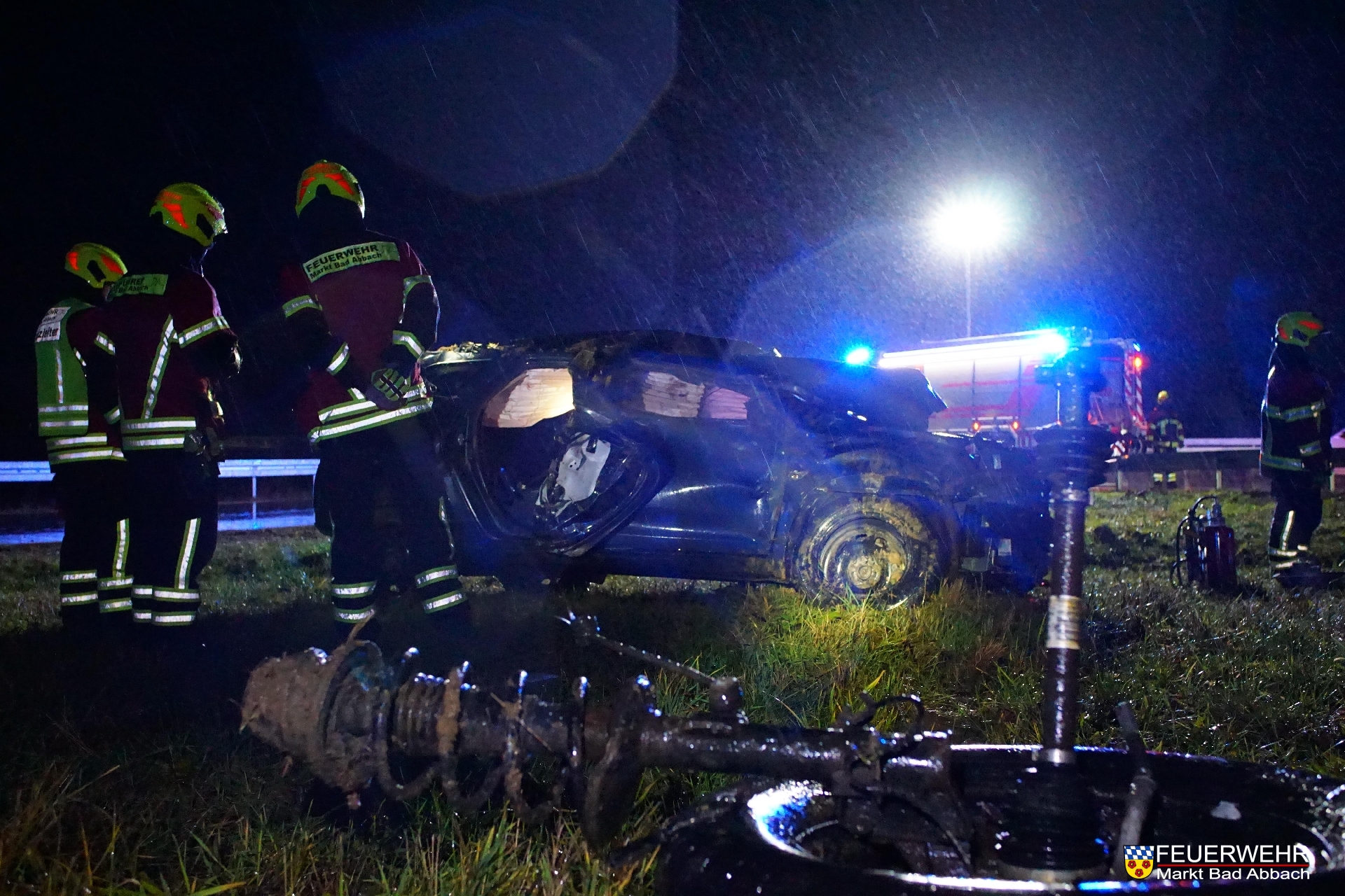 Feuerwehrsanitäter übernahmen sofort die Erstversorgung bis zum Eintreffen des Rettungsdienstes. Zudem wurde der Brandschutz sichergestellt und die Unfallstelle für die polizeiliche Aufnahme ausgeleuchtet.