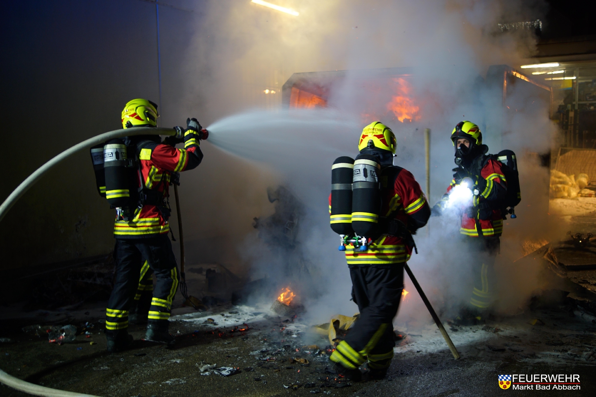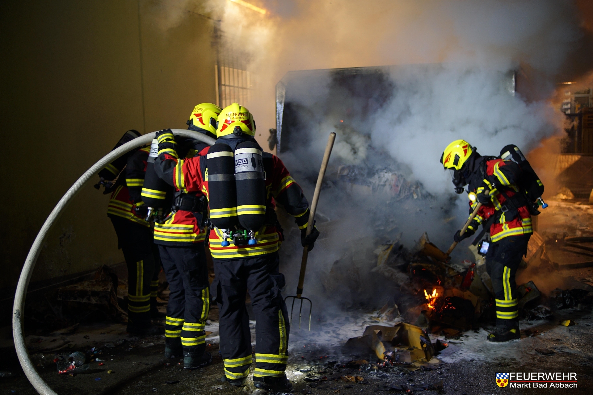 Ein Kelheimer Entsorgungsbetrieb wurde zum Wegziehen des Containers mit einem Trägerfahrzeug hinzugezogen. Daraufhin konnte dieser geöffnet, per Hand ausgeräumt und das Brandgut durch weitere Atemschutztrupps abgelöscht werden.