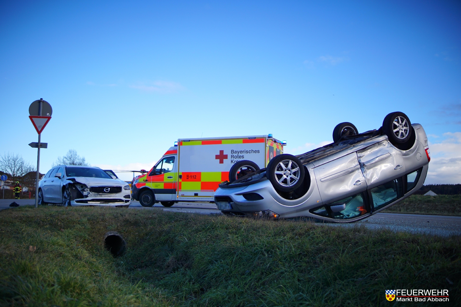 Gegen 14:36 Uhr wurden wir zu einem Verkehrsunfall auf die St2143 Abzweigung Gutenbergring alarmiert. Aus bisher unbekannter Ursache kollidierten zwei Pkw im Kreuzungsbereich. Einer der beiden Pkws überschlug sich in Folge des Zusammenstoßes und kam auf dem Dach zum liegen. Durch die Feuerwehr wurden die Verletzten Personen darunter zwei Kleinkinder bis zum Eintreffen des Rettungsdienstes durch Feuerwehrsanitäter versorgt. Weiter wurde durch die Feuerwehr der Brandschutz sichergestellt und der Verkehr großflächig umgeleitet. Die St2143 war für ca. 1 Stunde im Bereich der Unfallstelle voll gesperrt.