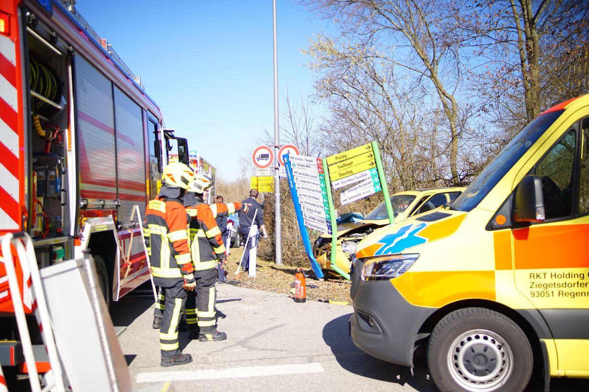 Die Unfallstelle wurde abgesichert, der Brandschutz sichergestellt und die defekte Schilderkombination in Vorbereitung der Fahrzeugbergung entfernt.