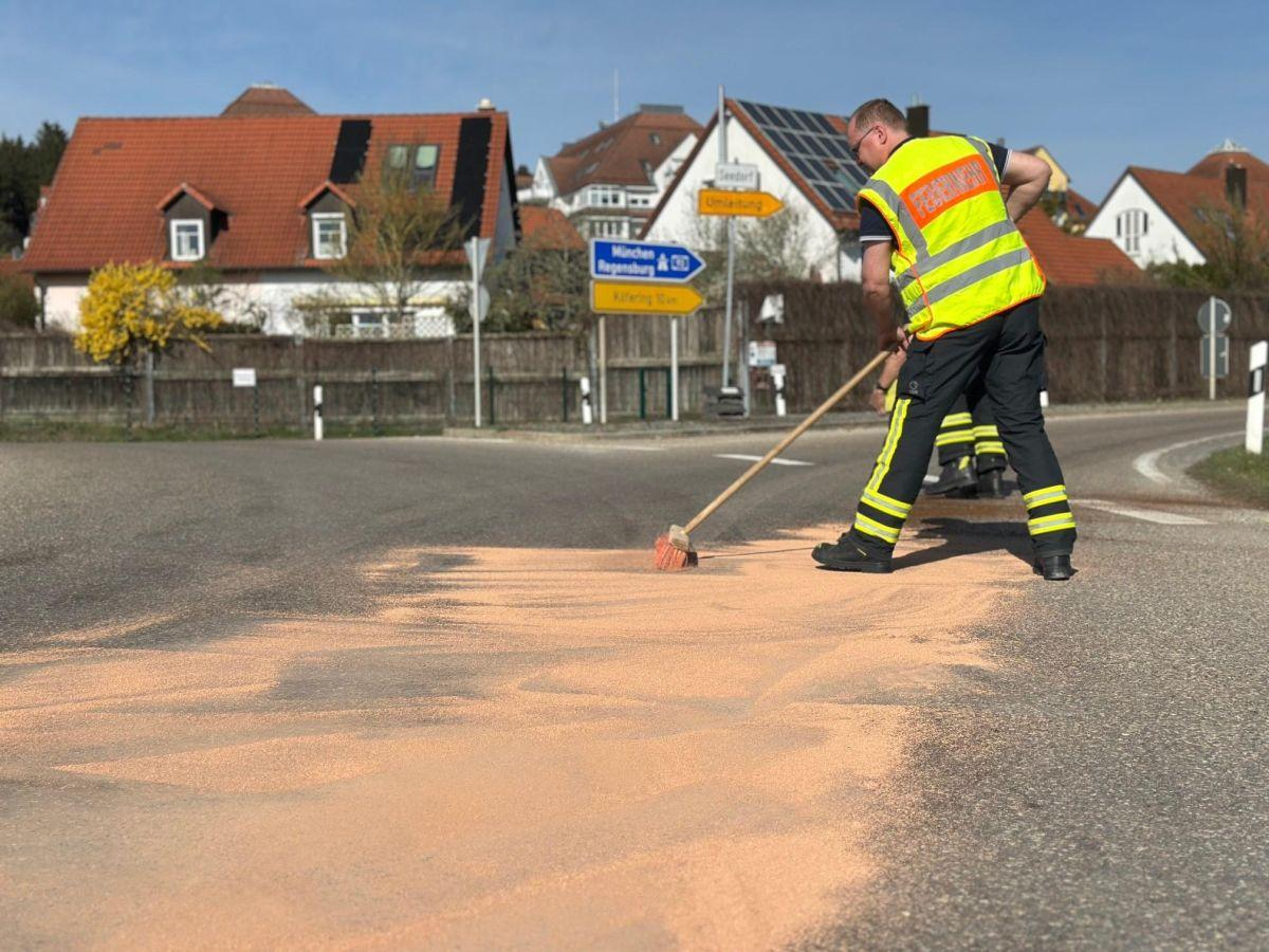 Um 16:05 Uhr wurden wir telefonisch über eine Hydraulikölspur im Bereich des Kreisverkehrs Gemling informiert. Aufgrund der Gefahr für Krad-Fahrer machte sich umgehend eine Besatzung zur Beseitigung auf den Weg.