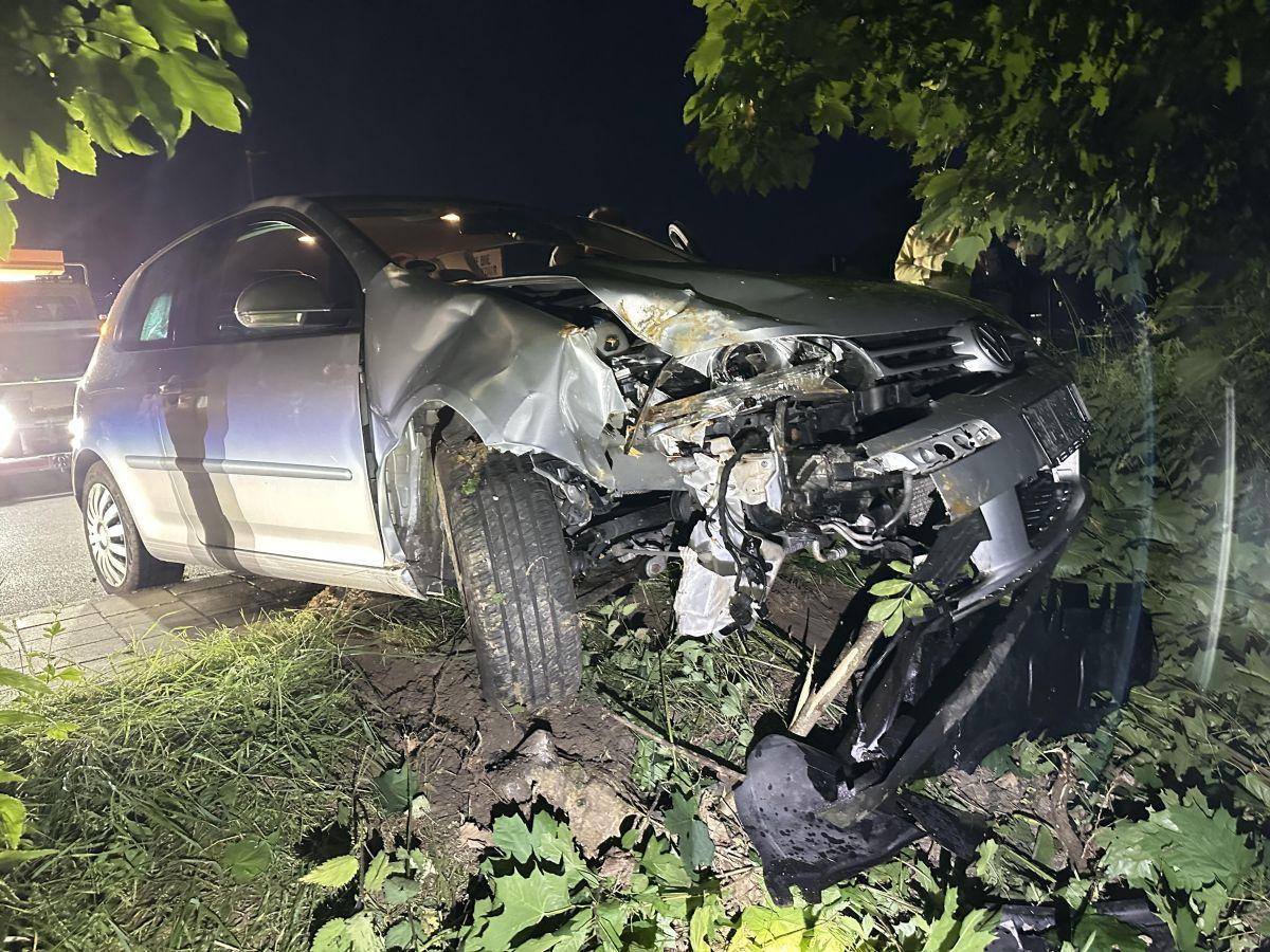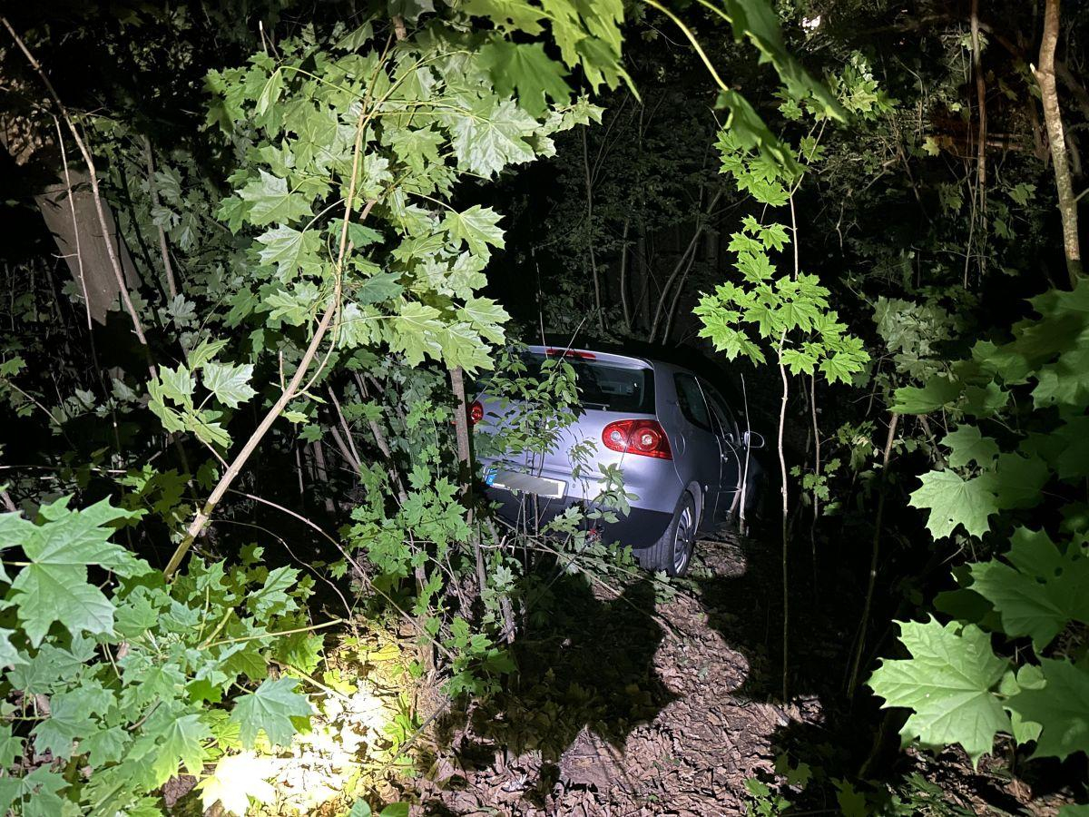 Ein Fahrzeug der Marke VW rutschte rund 10 Meter einen Abhang hinunter, kollidierte mit einem Baum und kam daraufhin zum Stehen.
