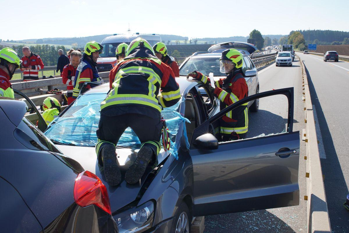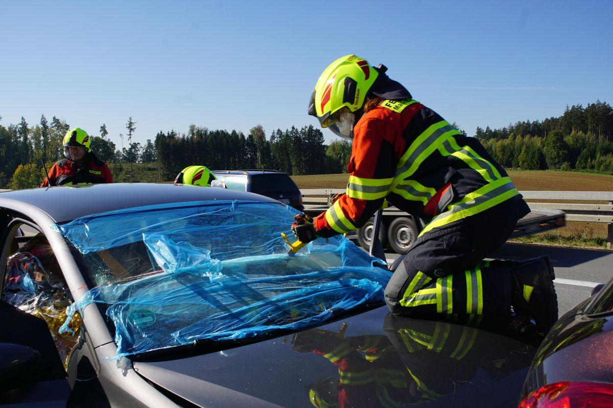 Aus bislang ungeklärter Ursache kam es zwischen dem Autobahndreieck Saalhaupt und der Ausfahrt Bad Abbach in Fahrtrichtung Regensburg zu einem Auffahrunfall mit drei beteiligten Pkw. Eine verletzte Person wurde vor Ort durch den mitalarmierten Rettungsdienst erstversorgt und nach Rücksprache mit dem Notarzt patientenschonend aus dem Fahrzeug befreit.