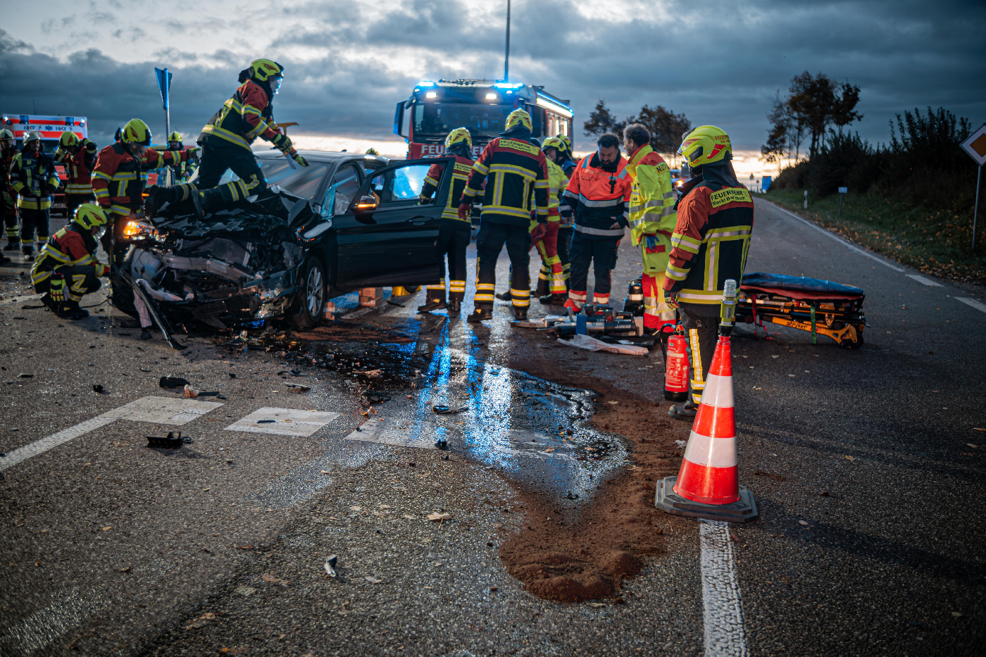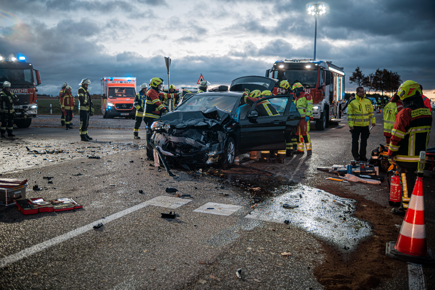 Zwei verletzte Personen wurden bis zum Eintreffen des Rettungsdienstes medizinisch betreut, parallel dazu eine patientenschonende Rettung aus dem BMW 2er vorbereitet und letztlich in Abstimmung mit den eingesetzten Notärzten auch durchgeführt.