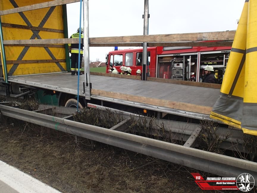 Aufgrund des Sturmtiefs "Niklas" wurde wir zu einem umgestürzten Lkw auf die Autobahn 93 in Fahrtrichtung Pentling alarmiert. Glücklicherweise war der Lkw unbeladen. Der Fahrer wurde verletzt dem Rettungsdienst übergeben. Zusammen mit den Kräften aus Pentling und Langquaid wurden die auslaufenden Betriebsstoffe gebunden und der Verkehr geregelt bis das Wrack durch ein Abschleppunternehmen abtransportiert war.