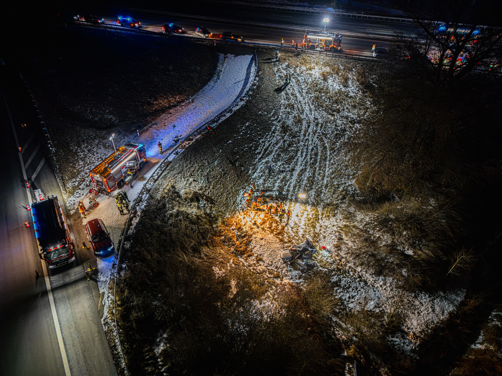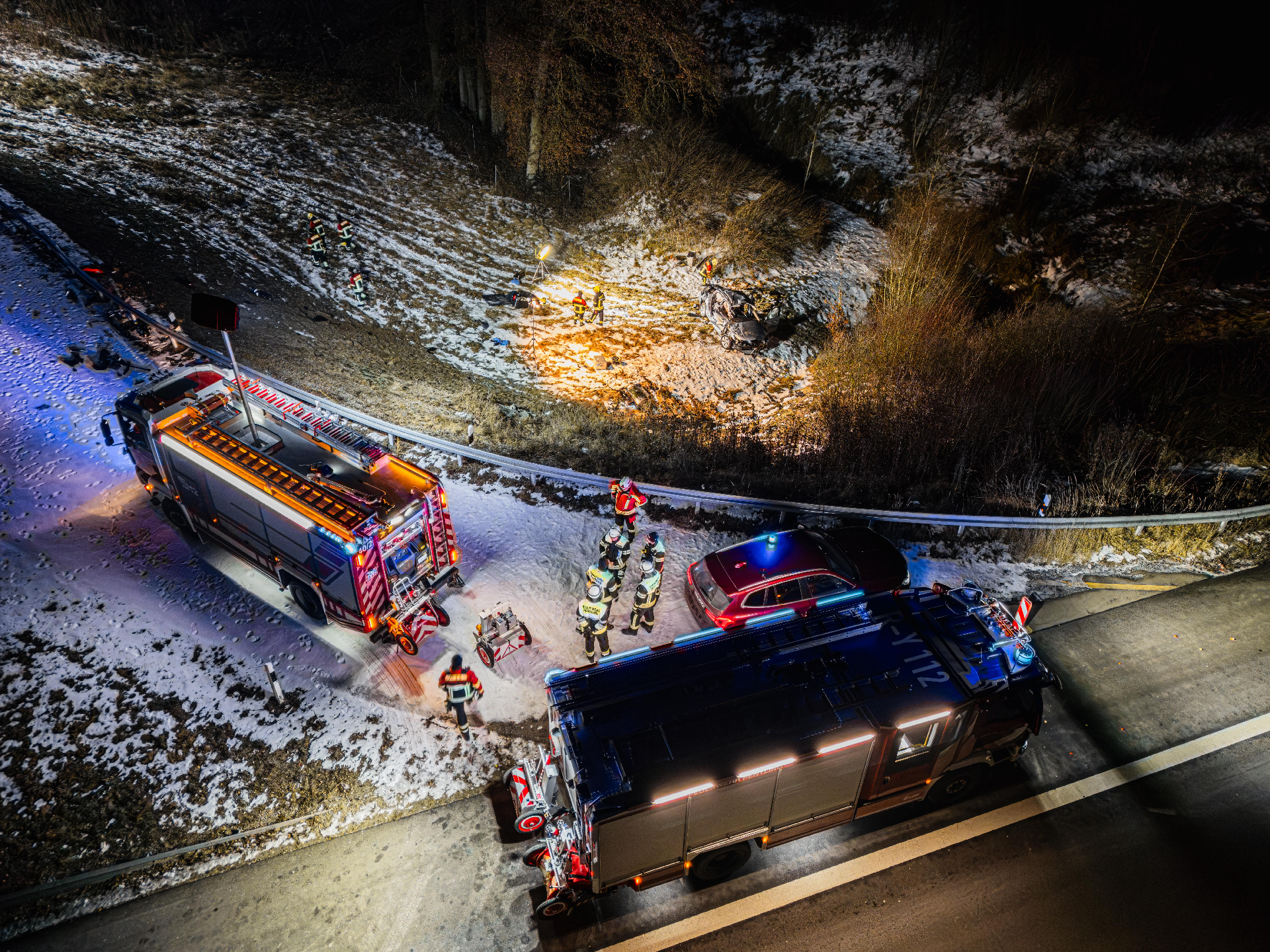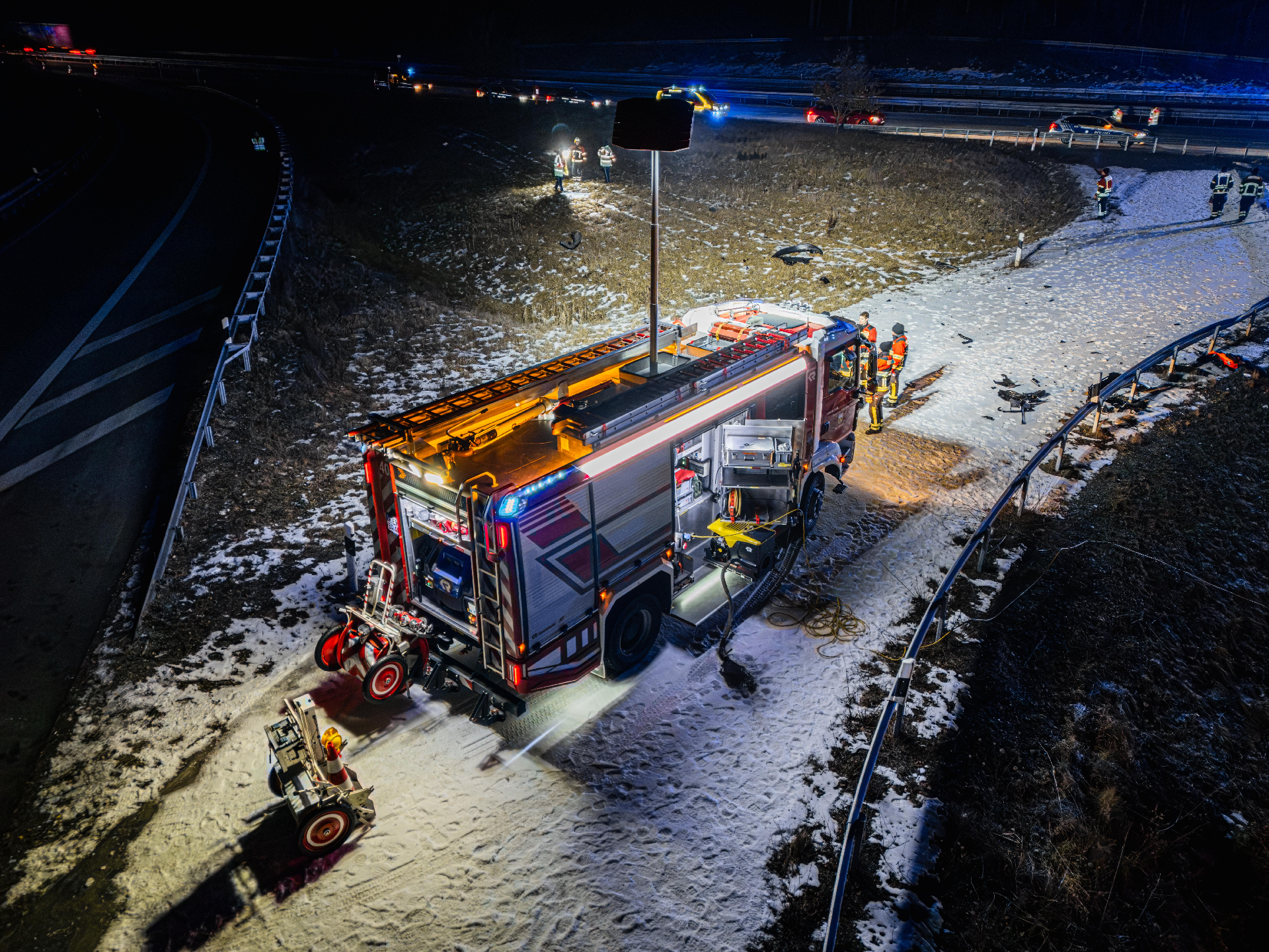 Über den gesamten Einsatzzeitraum wurde die Unfallstelle großflächig ausgeleuchtet, der Brandschutz sichergestellt und in Zusammenarbeit mit der Autobahnmeisterei verkehrslenkende Maßnahmen durchgeführt.