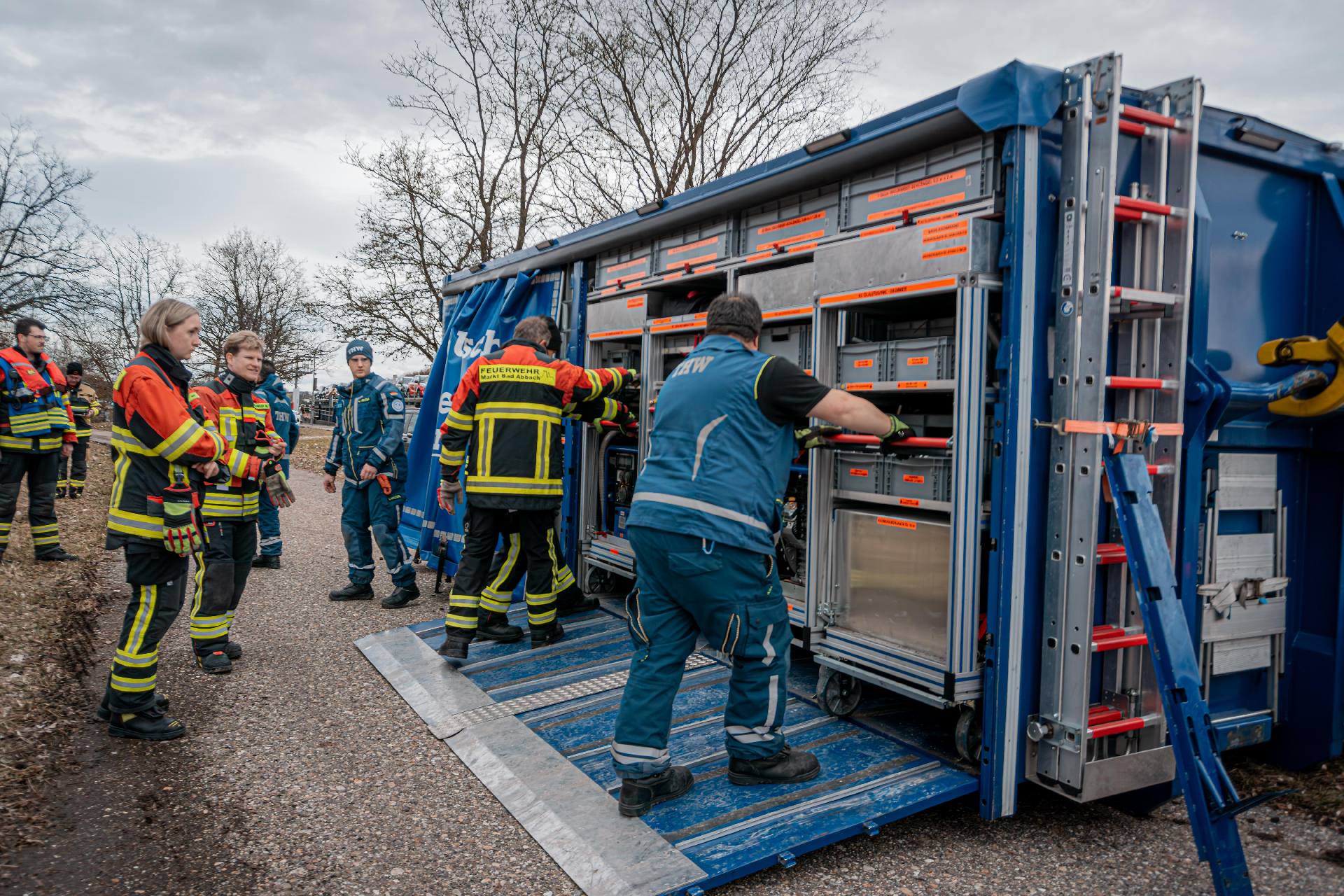 Zur Unterstützung der Maßnahmen wurden gegen 15:00 Uhr weitere Boote aus dem Ortsteil Lengfeld sowie von den Feuerwehren aus Kelheim und Saal a.d. Donau nachalarmiert. Zusätzlich kam die Drohnenstaffel aus Kelheim zur Luftdokumentation und Lageübersicht zum Einsatz. Die Feuerwehr aus Teugn übernahm die Führungsunterstützung der Einsatzleitung.