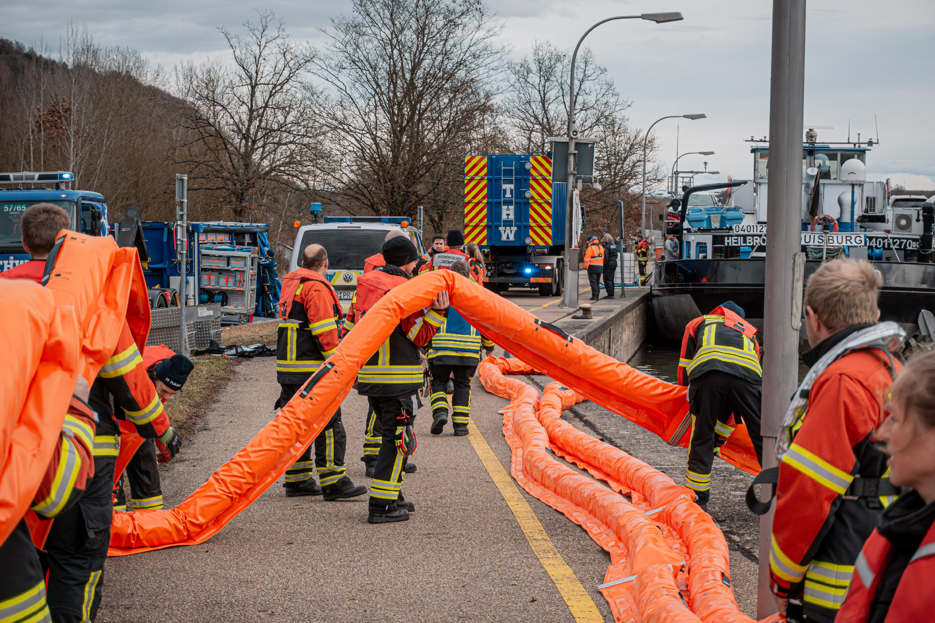 Ein Bunkerschiff hatte mehrere Liter Gasöl verloren, was zu einer großflächigen Verschmutzung der Wasseroberfläche führte. Nach einer umgehenden Lageerkundung durch den Fachberater des THW und den Einsatzleiter der Feuerwehr wurde die Fachgruppe Ölschaden des THW mit Alarmstufe 2 hinzugezogen.