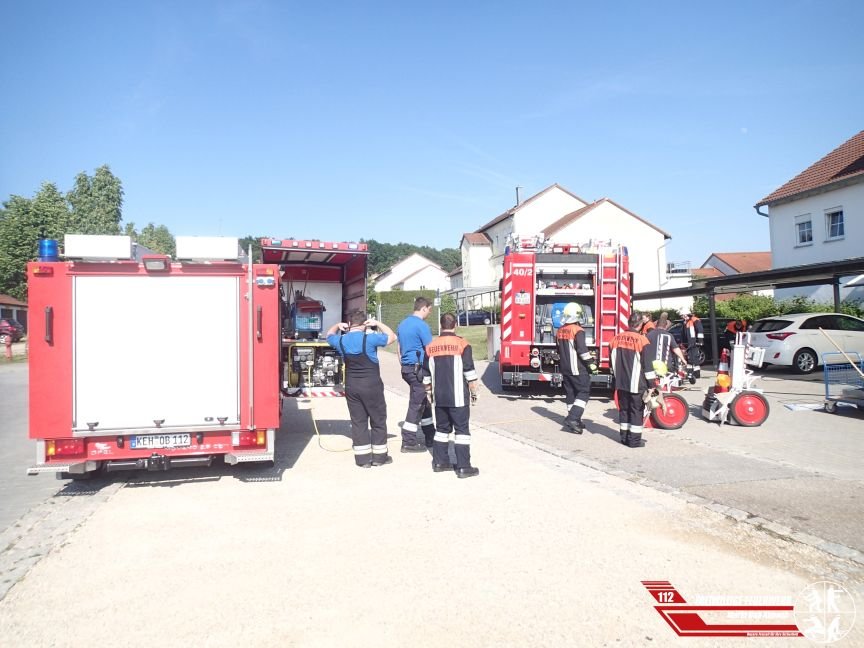 Zu einem Keller unter Wasser wurden wir um 16:28 Uhr in die Goethestraße alarmiert. Drei Keller von Reihenhäuser waren bei Eintreffen der ersten Einsatzkräfte bereits ca. 40 cm vollgelaufen. In kürzester Zeit wurde der Hauswasserhaupteingang abgedreht und somit das weitere volllaufen der Keller verhindert. Zum Abpumpen des ca. 300 m² großen Keller waren drei Wassersauger und eine Tauchpumpe im Einsatz. Zur Unterstüzung wurde die Feuerwehr Oberndorf nachalarmiert.