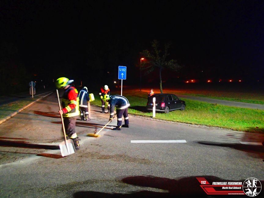Um 2:33 Uhr wurden wir auf Anforderung der Polizei zu einer Ölspur nach einem Verkehrsunfall in die Konrad-Adenauer-Straße alarmiert. Ein Verkehrsteilnehmer kam aus bislang ungeklärter Ursache von der Fahrbahn ab, touchierte mehrere Verkehrszeichen und überquerte den Kreisverkehr. Dabei kam die Ölwanne des Fahrzeugs zu Schaden und lief aus. Wir banden die ausgelaufenen Betriebsstoffe und sicherten die Unfallstelle ab. Ein Personenschaden war nicht zu verzeichnen.