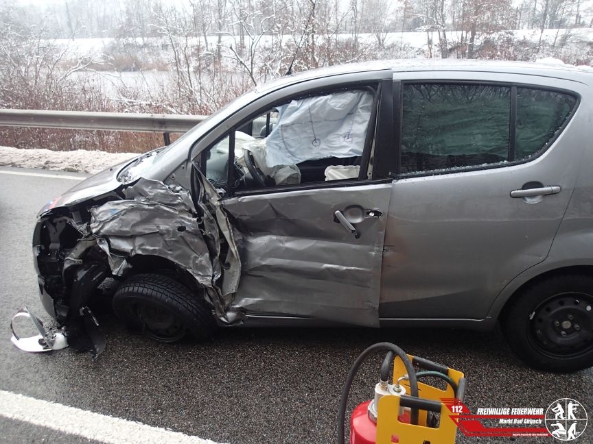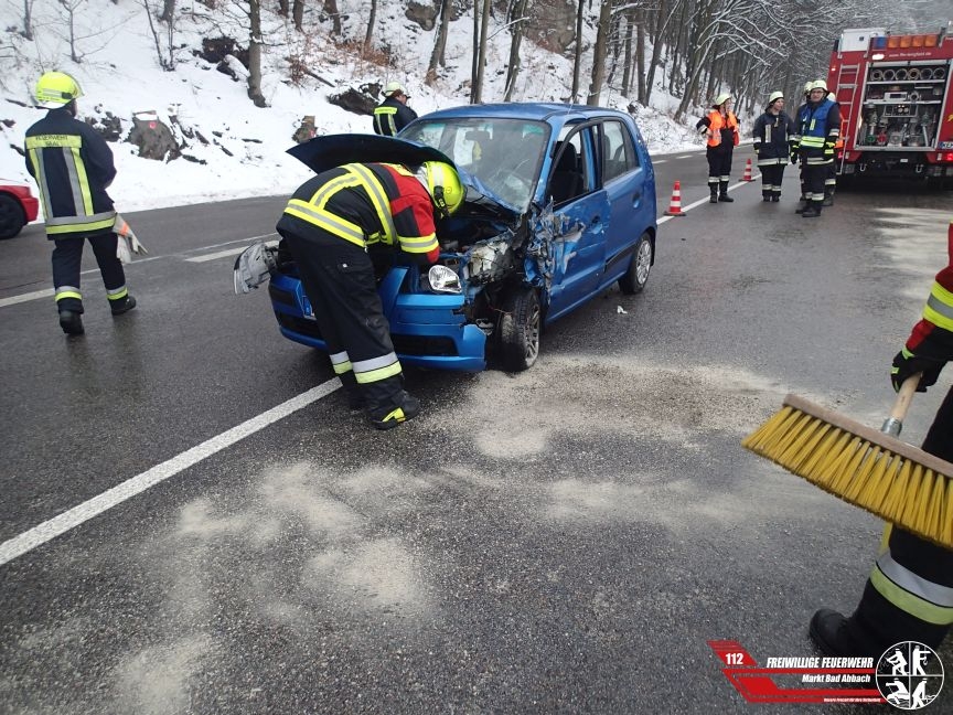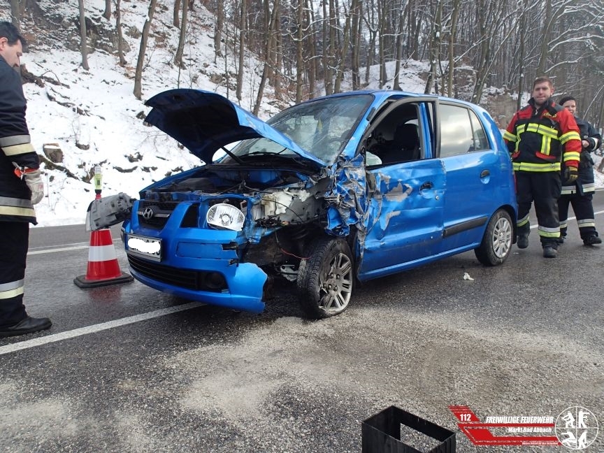 Um 13:08 Uhr wurden wir zu einem Verkehrsunfall zwischen zwei Pkw auf die Bundesstraße 16, Höhe des Teufelsfelsens alarmiert. Nach einem Frontalzusammenstoß zweier Kleinwägen wurde die Bundesstraße massiv verschmutzt. Zusammen mit den Kollegen der Feuerwehr Lengfeld sicherten wir die Unfallstelle ab und banden ausgelaufene Betriebsstoffe. Zur Verkehrsausleitung aufgrund einer Vollsperre wurde von der Gegenrichtung die Feuerwehr Saal a.d. Donau alarmiert. Insgesamt drei Insassen der PKW´s wurden leicht verletzt und in umliegende Krankenhäuser transportiert. Aufgrund der auf 100 Meter mit Öl verschmutzten Fahrbahn, wurde eine Spezial-Kehrmaschiene angefordert.