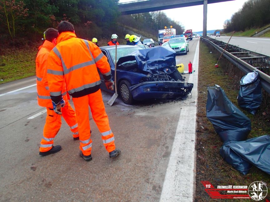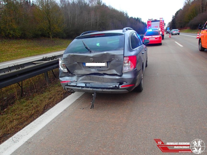 Um 14:11 Uhr wurden wir zur Unterstützung für die Leitstelle Regensburg auf die Autobahn 93 zwischen den Anschlusstellen Bad Abbach und Rasthof Pentling zu einem Verkehrsunfall mit mehreren Fahrzeugen alarmiert. Bereits die Anfahrt gestaltete sich aufgrund massiver Rückstauungen und nichtvorhandenen Rettungsgassen sehr schwierig. An der Unfallstelle angekommen stellte sich folgende Lage heraus. Drei Pkw kollidierten aus ungeklärter Ursache miteinander. Die Meldung über eine eingeklemmte Person konnte nicht bestätigt werden. Zwei verletzte Personen wurde durch den Rettungsdienst versorgt und die Unfallstelle durch die Feuerwehr Pentling und uns abgesichert. Nachdem die Fahrzeugwracks abtransportiert waren, konnten die Fahrbahnen gereinigt und anschließend nach einer Vollsperrung wieder freigegeben werden.