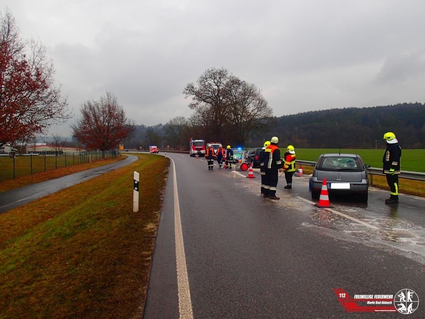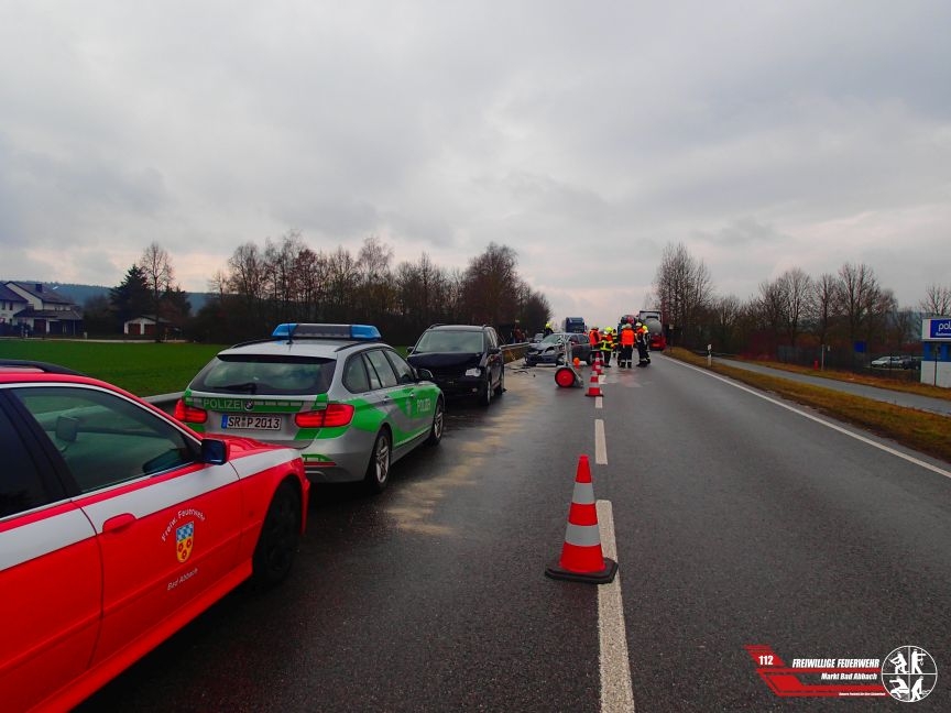Die Ortsteilfeuerwehr Lengfeld wurde heute Vormittag zu einem Verkehrsunfall mit mehreren Fahrzeugen auf die Bundesstraße 16 alarmiert. Von Bad Abbach fuhr ein Führungsdienstgrad, sowie eine sich auf der Wache befindete Mannschaft mit dem HLF 20/16 ebenfalls die Einsatzstelle mit an. Auf rund 200m war die Fahrbahn durch Öl und Kraftstoff verunreinigt und musste mittels Bioreiniger, sowie Ölbinder gereinigt werden. Die Feuerwehr Saal wurde nachalarmiert um die Bundesstraße 16 Höhe der Abfahrt Obersaal komplett zu sperren und den Verkehr auszuleiten. Nachdem die verunfallten PKW abtransportiert waren und die B16 gereinigt wurde, konnte die Straße nach rund zwei Stunden wieder für den Verkehr freigegeben werden.