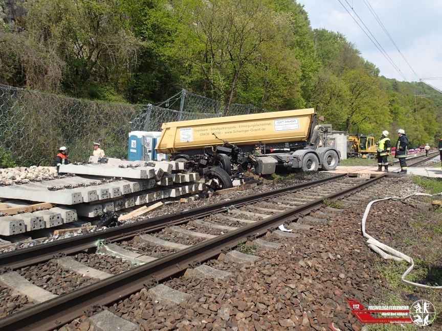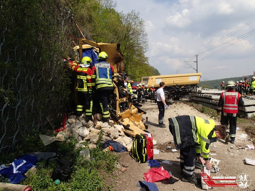 Um 14:06 Uhr wurde der Rüstzug und die Drehleiter zusammen mit der Ortsteilfeuerwehr Oberndorf zur Unterstützung der Kräfte aus dem Landkreis Regensburg zu einem Zugunfall an den nördlichen Bahnübergang bei Matting alarmiert. Aus bisher ungeklärter Ursache kollidierte gegen 14 Uhr ein Triebwagen der deutschen Bahn frontal mit einem auf dem Übergang befindlichen Sattelzug. Durch die Wucht des Aufpralls wurde die Zugmaschine des Lkw völlig zerissen und blieb in mehreren Einzelteilen neben der Bahnstrecke liegen. Der Fahrer des Lkw konnte bereits außerhalb des Fahrerhauses aufgefunden werden und wurde durch den mitalarmierten ITH "Christoph Regensburg" mit schwersten Verletzungen in ein Krankenhaus geflogen. Der Zugführer welcher nach circa 400 Meter Bremsweg mit dem Triebwagen zum Stehen kam, blieb glücklicherweise unverletzt.