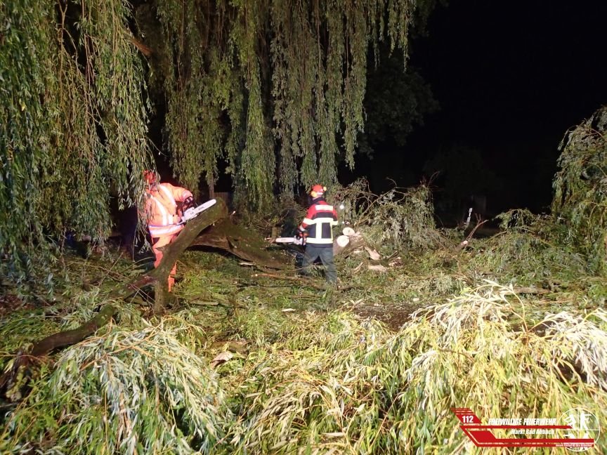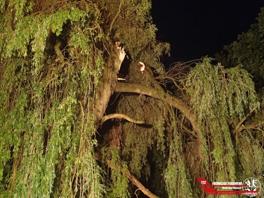 Zu einem umgestürzten Baum wurden wir gemeinsam mit der Ortsteilfeuerwehr Peising am heutigen Abend alarmiert. Ein großer Ast einer Weide war abgebrochen und lag auf der Straße. Ein weiterer abgeknickter Ast musste mittels Drehleiter und Kettensäge entfernt werden. Die Straße war für die Einsatzdauer komplett gesperrt.