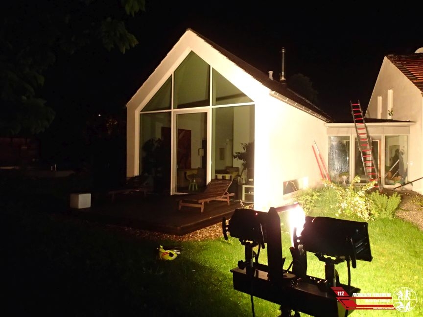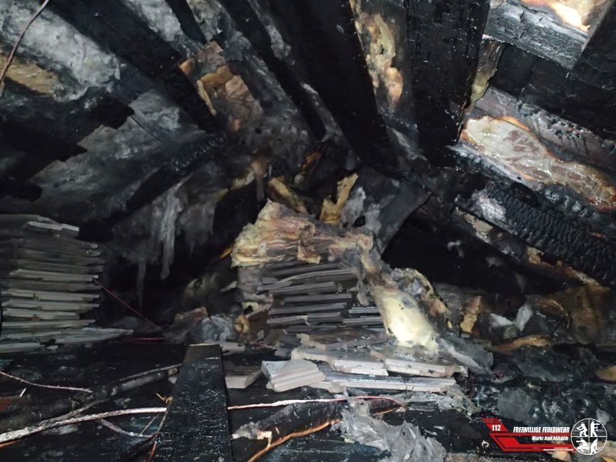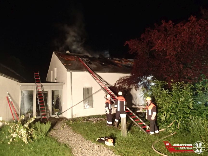 Am Samstag Abend gegen 23 Uhr wurden wir mit den Feuerwehren Poikam und Lengfeld zu einem Dachstuhlbrand mit Personen in Gefahr nach Poikam in die Kreuzstraße alarmiert. Beim Eintreffen der Kräfte war bereits ein Feuerschein im Dachstuhl zu erkennen, daraufhin versuchten mehrere Trupps unter schwerem Atemschutz einen Innenangriff. Nachdem der versuchte Innenangriff zu keinem Erfolg führte, wurde mittels Schiebeleitern eine Zugangsmöglichkeit auf das Dach geschaffen, da es keine Aufstellfläche für die Drehleiter gab.