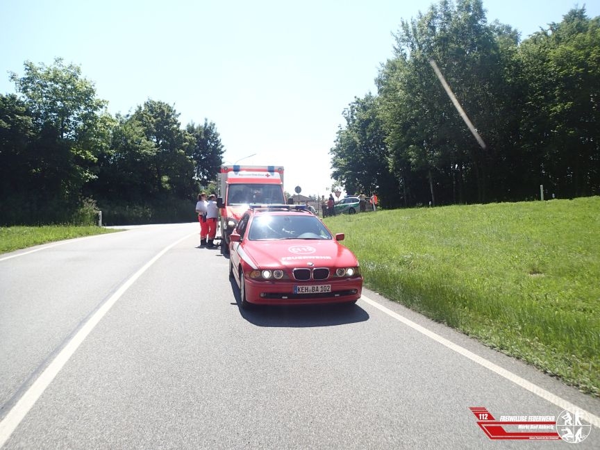 In der Ausfahrt Bad Abbach Nord, der Bundesstraße 16 kam es heute Vormittag zu einem Auffahrunfall zwischen zwei PKW. Eine Person wurde bei dem Unfall leicht verletzt und durch uns erstversorgt. Der Verkehr wurde wechselseitig am Unfallort vorbeigeleitet, außerdem wurden auslaufende Betriebsstoffe durch uns gebunden.