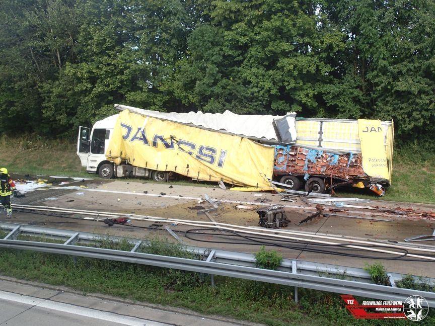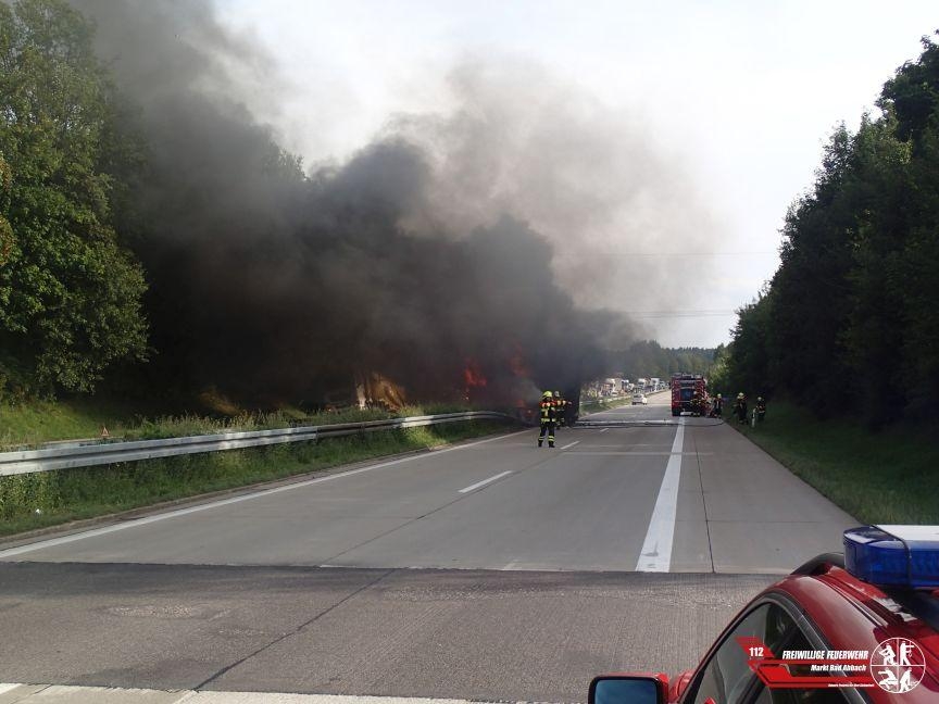 Gegen 17 Uhr kam es auf der Autobahn 93 kurz vor der Anschlussstelle Bad Abbach in Fahrtrichtung Regensburg zu einem folgeschweren Verkehrsunfall zwischen zwei Lkw, wobei einer davon die Mittelleitplanke durchbrach und daraufhin Feuer gefangen hat. Aufgrund der unklaren Lage löste die zuständige Integrierte Leitstelle Landshut einen Großalarm aus.