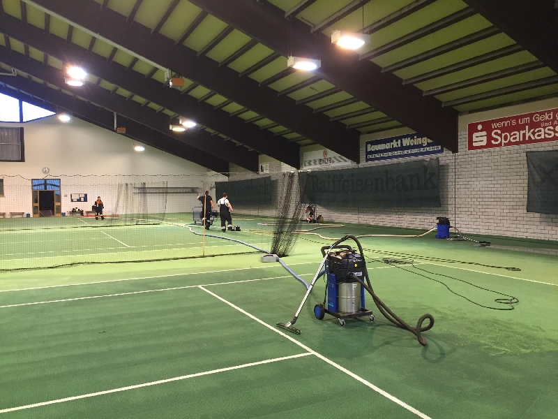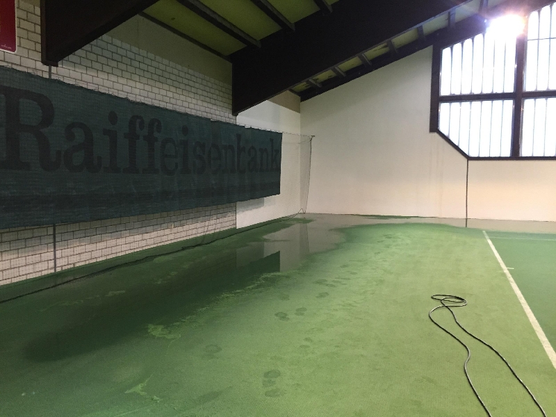 überflutete Tennishalle