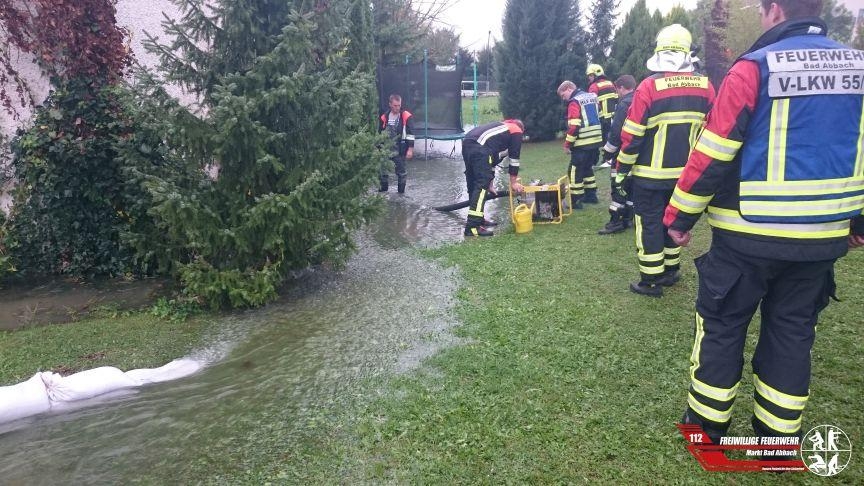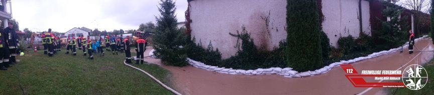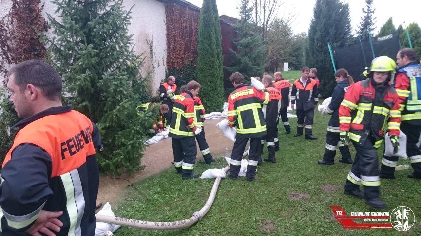 Am Sonntagnachmittag wurden wir aufgrund der starken Regenfälle in die Goldtalstraße alarmiert. Hier stand eine Tennishalle zum Teil bis zu 10 cm unter Wasser. Auf der Rückseite der Tennishalle befindet sich ein Bach, welcher dann unter der Erde verschwindet. Jedoch verstopfte das Rohr und somit kam es zum extremen überlauf des Baches. Durch eine Türe wurde das Wasser in die Tennishalle gespült. Mittels mehrerer Wassersauger konnte das Wasser jedoch ausgepumpt werden. Im äußeren Bereich zog sich der Einsatz insgesamt 5 Stunden hinweg. Es wurde mittels Sandsäcken eine Mauer gebaut um das Wasser gezielt in einen Kanal laufen zu lassen, auch wurden mehrere große Pumpen eingesetzt um die Wassermassen schneller zu beseitigen. Mittels eines Baggers konnte das Abflussrohr frei gebaggert werden.