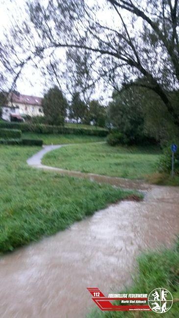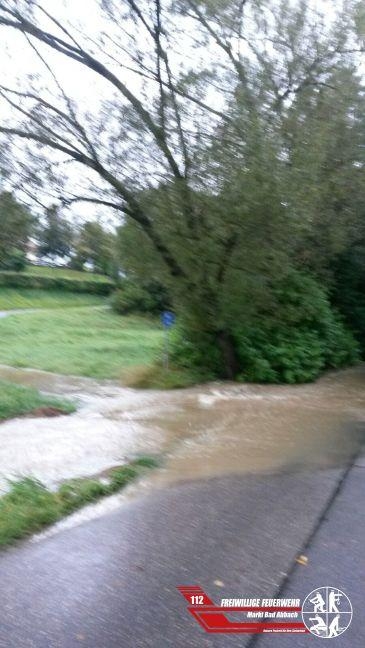 Nach den starken Regenfällen ist auch der Abbacher Mühlbach übergelaufen und hat eine Zufahrtstraße zu einem Wohngebiet überschwemmt. Die Straße musste durch den örtlichen Bauhof für einige Zeit gesperrt werden. Durch die Feuerwehr Lengfeld wurde dann eine Mauer aus Sandsäcken errichtet um die Straßen mit Einschränkungen wieder passierbar zu machen.