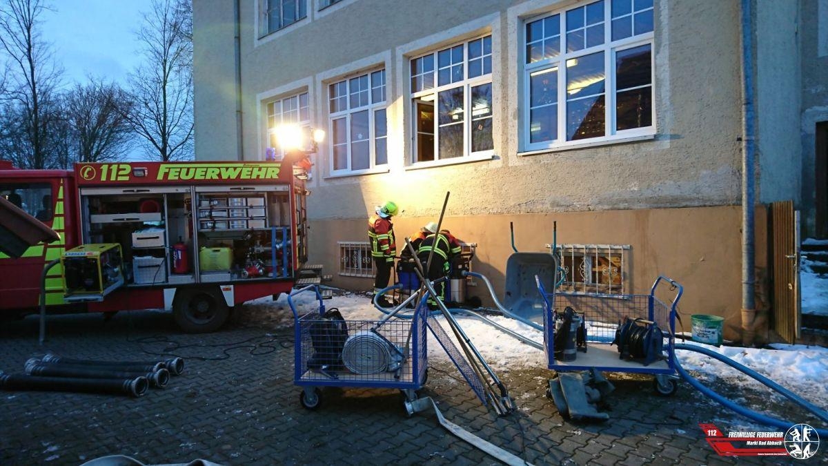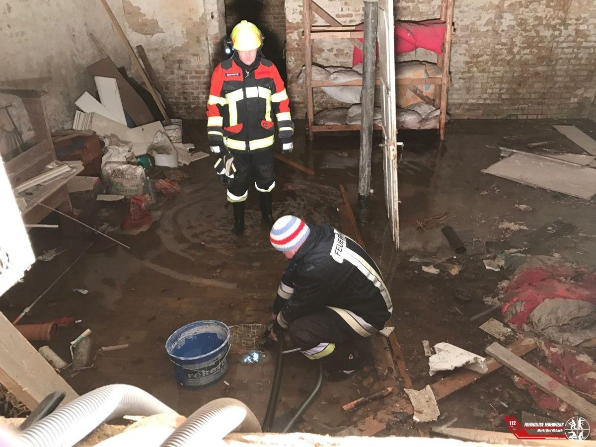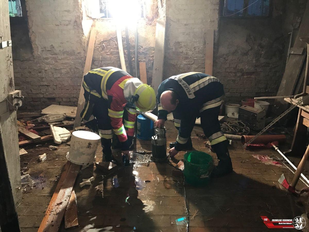 Gegen 16:00 Uhr wurden wir von der Ortsteilwehr Dünzling telefonisch zu einem bereits laufenden Einsatz nachgefordert. Aufgrund eines Wasserrohrbruchs wurde der Keller eines Wohnhauses auf einer Fläche von 100m² mit circa 50cm Wasser geflutet. Die Kameraden aus Dünzling stellten vorerst den Auslöser des Wasserschadens ab und begannen mit den Pumparbeiten. Wir wurden kurze Zeit später mit weiteren Nasssaugern und Tauchpumpen an die Einsatzstelle gerufen.