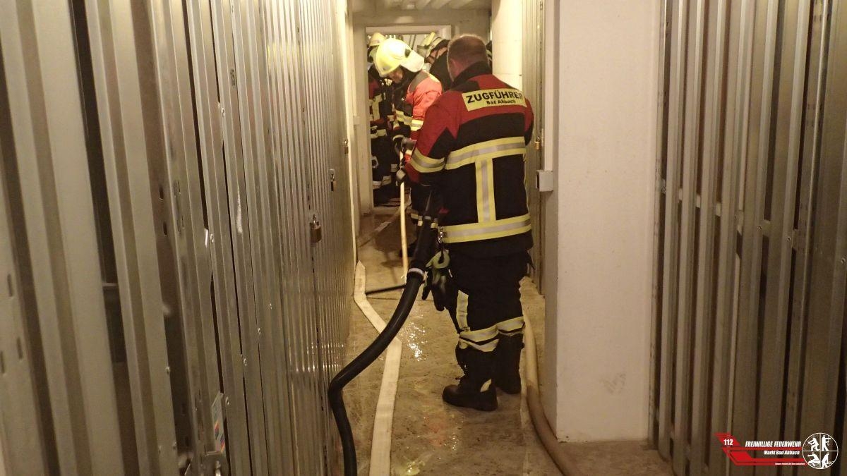 Der Sickerschacht wurde leergepumpt und der Verschluss beseitigt. Ebenfalls wurden die mit circa 20 Zentimeter Wasser gefluteten Kellergänge trockengesaugt.