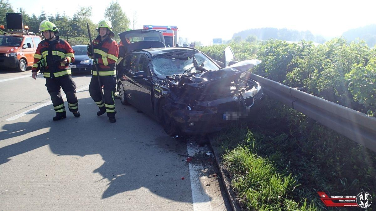 Am heutigen Montagmorgen wurden wir durch die ILS Landshut mit dem Stichwort ''Verkehrsunfall mit Pkw, Pkw in Mittelleitplanke" auf die Autobahn 93 alarmiert. Beim Eintreffen unserer Kräfte stellte sich folgende Lage dar: Ein Pkw der Marke Bmw wurde nach einem Zusammenstoß mit einem Lkw in die Mittelleitplanke geschleudert. Die Unfallstelle wurde durch uns abgesichert und der Verkehr über die rechte Fahrspur vorbeigeleitet. Eine Person wurde hierbei mittelschwer verletzt. Nachdem die Fahrbahn gereinigt wurde und der Unfallwagen abgeschleppt worden war konnten alle Kräfte die Einsatzstelle wieder verlassen.