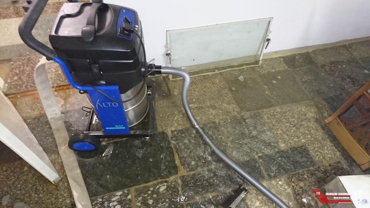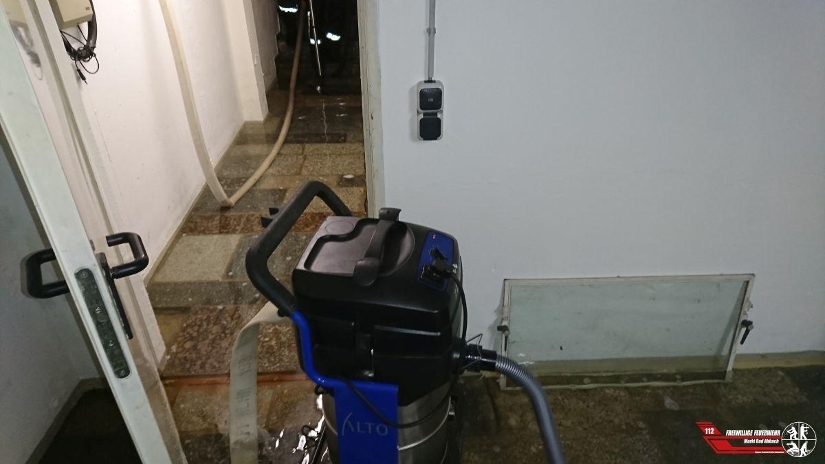 Während wir noch auf der A93 im Einsatz waren, wurden wir durch die ILS Landshut über einen Keller unter Wasser in Bad Abbach "Am Markt" informiert. Sofort fuhr ein Führungsdienstgrad diese Einsatzstelle an. Nach der Erkundung wurde der V-LKW mit einigen Wassersaugern entsandt. Der Keller war auf einer Fläche von 40 m² circa 20 cm unter Wasser. Das Wasser wurde mittels drei Wassersaugern abgepumpt.