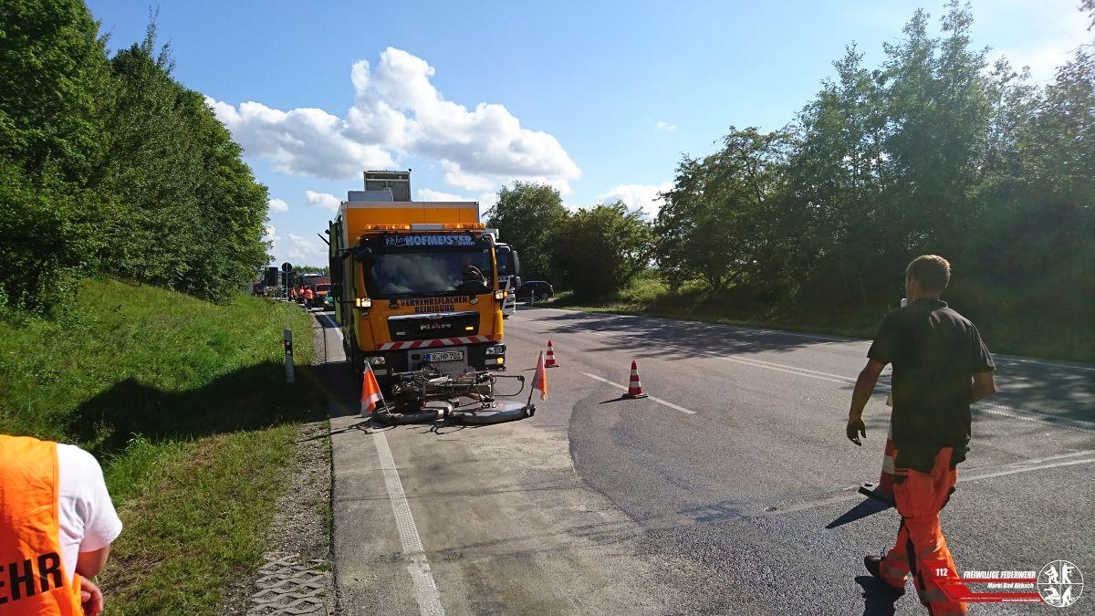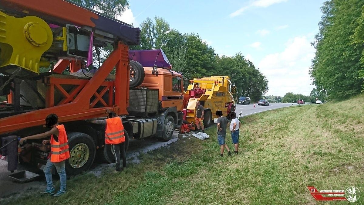 Zu unserem zweiten Einsatz am heutigen Tag wurden wir gemeinsam mit den Feuerwehren Graßlfing und Pentling auf die Bundesstraße 16 alarmiert. Aufgrund eines Motorschadens an einem LKW war größere Menge Öl ausgetreten. Wir übernahmen die Verkehrsabsicherung, sowie banden auslaufende Betriebsmittel. Ein LKW Abschleppunternehmen barg den defekten LKW und schleppte diesen samt dem Auflieger ab. Außerdem wurde aufgrund der großflächigen Verschmutzung durch Öl ein Spezialfahrzeug zum entfernen von Ölspuren aus dem Abschleppunternehmen angefordert. Nach dem Abschluss der Arbeiten konnte die Fahrbahn wieder komplett für den Verkehr freigegeben.