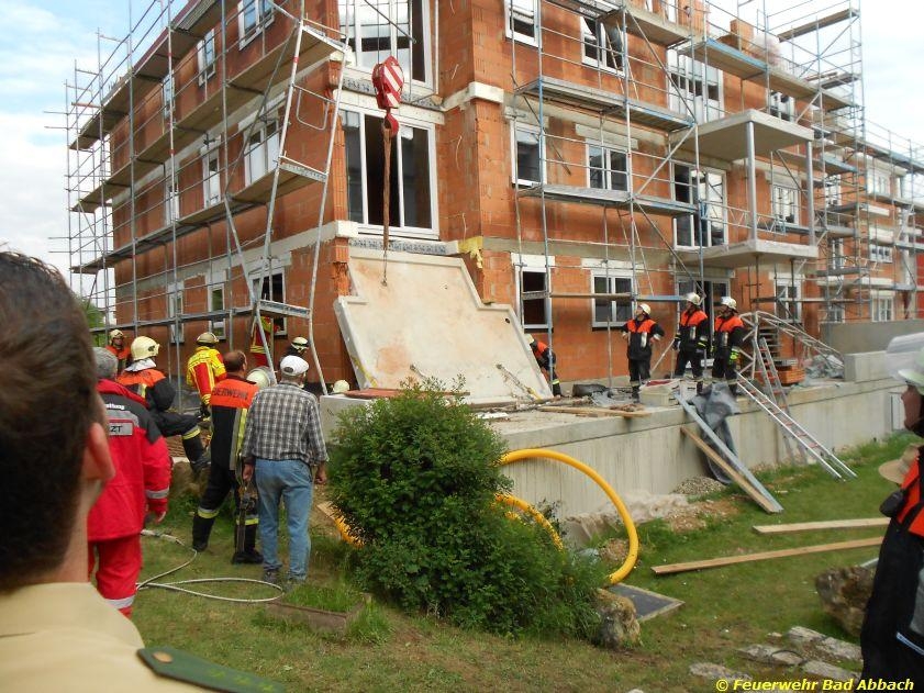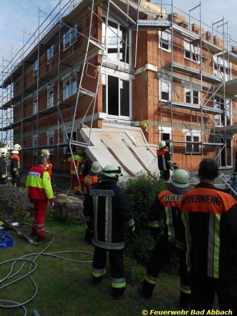 Person unter Balkon eingeklemmt