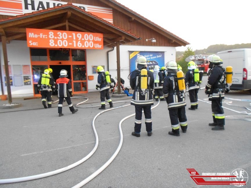 Gegen 5:30 Uhr wurden wir in den Gutenbergring zu einem Kellerbrand alarmiert. Schnell konnte der Einsatzleiter einen Kellerbrand ausschließen, da sich im gemeldeten Objekt kein Keller befindet. Der Getränkemarkt brannte im Inneren, ohne nach außen erkenntliche Flammen völlig aus. Es handelte sich hierbei um einen Schwelbrand, welcher nach Stunden wieder von selber aufgrund des Sauerstoffmangels erlischt. Ein aufmerksamer Zeitungsbote bemerkte eine leichte Rauchentwicklung in einem für die Zeitungen reservierten Raum. Nachdem die Schiebetüren gewaltsam geöffnet wurden, konnten mehrere Trupps unter schwerem Atemschutz mit C-Rohren vorgehen um sicherzustellen, dass das Feuer bereits erloschen war. Mittels der Wärmebildkamera wurden gefährliche Stellen lokalisiert und daraufhin gekühlt. Die Halle wurde belüftet und anschließend der Kriminalpolizei übergeben.